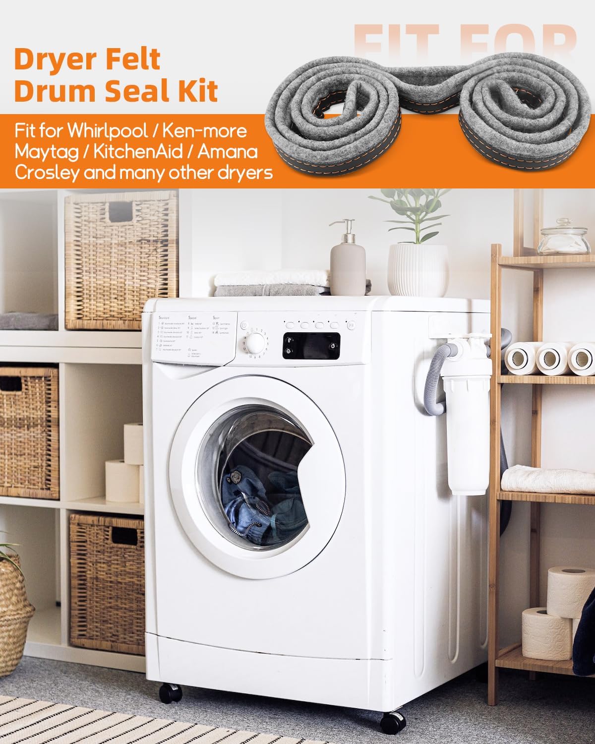 Name: Dryer Drum Felt SealSuitable for: Fit for Whirlpool / Kenmore / Maytag / KitchenAid / Amana / Crosley and many other dryersReplacement numbers: 280114, 3403265, 697694, 1065278, W10116343, W10166807, W10521118, AH970088, PS970088