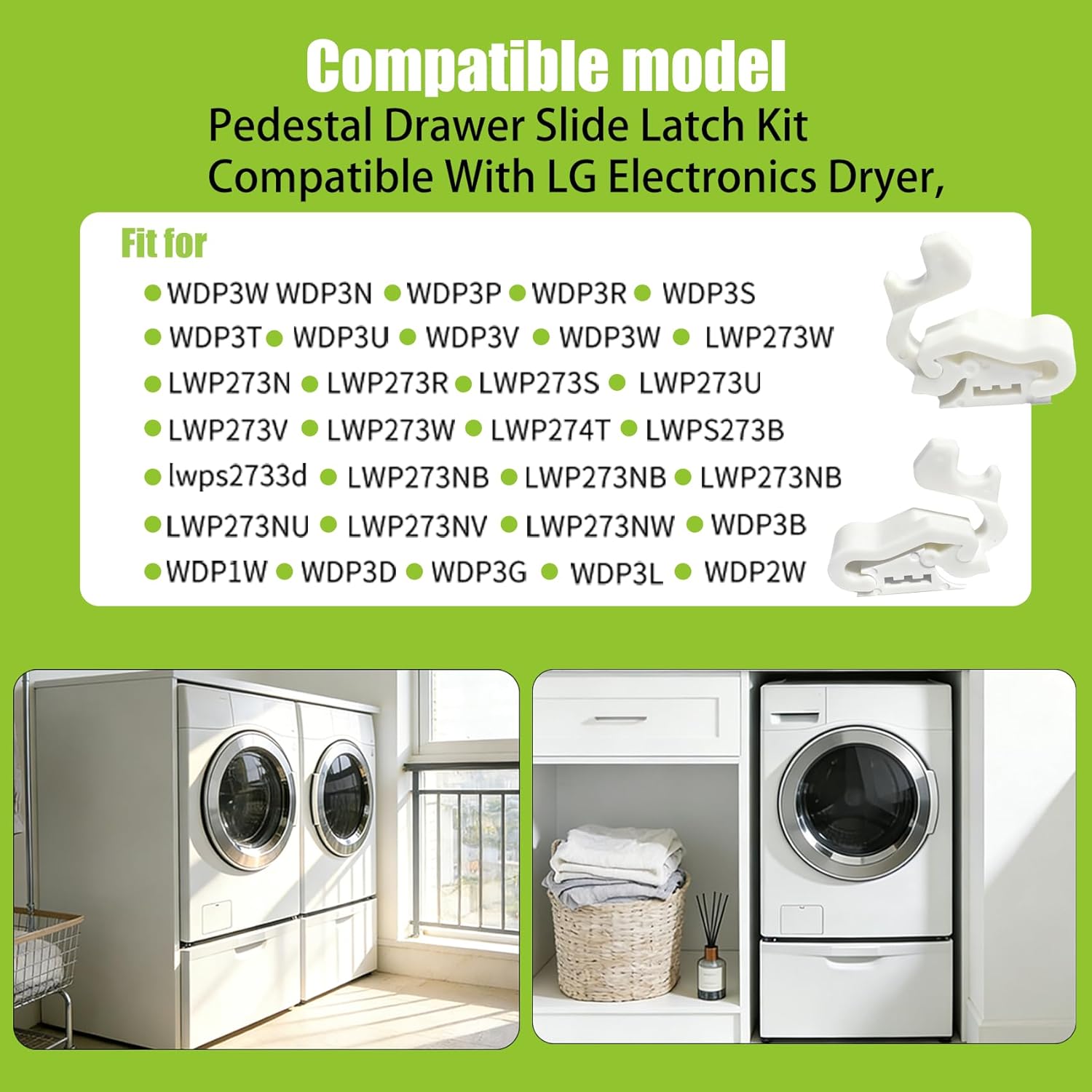 4276ER0001A Left and Right Side Pedestal Drawer Slide Latch Kit Compatible With LG Electronics Dryer,Replacement Assembly for Plastic Latch of Dryer Pedestals,4276ER0002A Manufacturer Part Number:4276ER0001A Left Side and 4276ER0002A Right Side Pedestal Drawer Slide Latch Be sure to confirm Left and right: 4276ER0002A is officially defined as the Left Side drawer slide rail. However, please note that when facing the front of the base, this slide rail may be installed on your right side. Product features: When the Drawer Slide Latch of the dryer base is worn or damaged and the Drawer cannot be used normally, replacing this 4276ER0001A Latch can quickly repair it and provide stable support for the Drawer Slide of the dryer base, allowing the drawer to smoothly complete the push-in and pull-out actions. Compatible model: Pedestal Drawer Slide Latch Kit Compatible With LG Electronics Dryer,Fit for WDP3W WDP3N, WDP3P, WDP3R, WDP3S, WDP3T, WDP3U, WDP3V, WDP3W, LWP273W, LWP273N, LWP273R, LWP273S, LWP273U, LWP273V, LWP273W, LWP274T, LWPS273B, lwps2733d, LWP273NB, LWP273NB, LWP273NB, LWP273NU, LWP273NV,LWP273NW, WDP3B, WDP1W, WDP3D, WDP3G, WDP3L, WDP2W Good quality: Pedestal Drawer Slide Latch KitPedestal Drawer Slide Latch is made of ABS plastic, which is not easy to break. Compared with 3D-printed Assembly, ABS plastic has good wear resistance and a long service life Easy installation: The 4276ER0001A and 4276ER0002A Drawer Slide Latch structure design fits the base. Without complex professional tools, ordinary users can also complete the disassembly and replacement operations, facilitating daily maintenance.