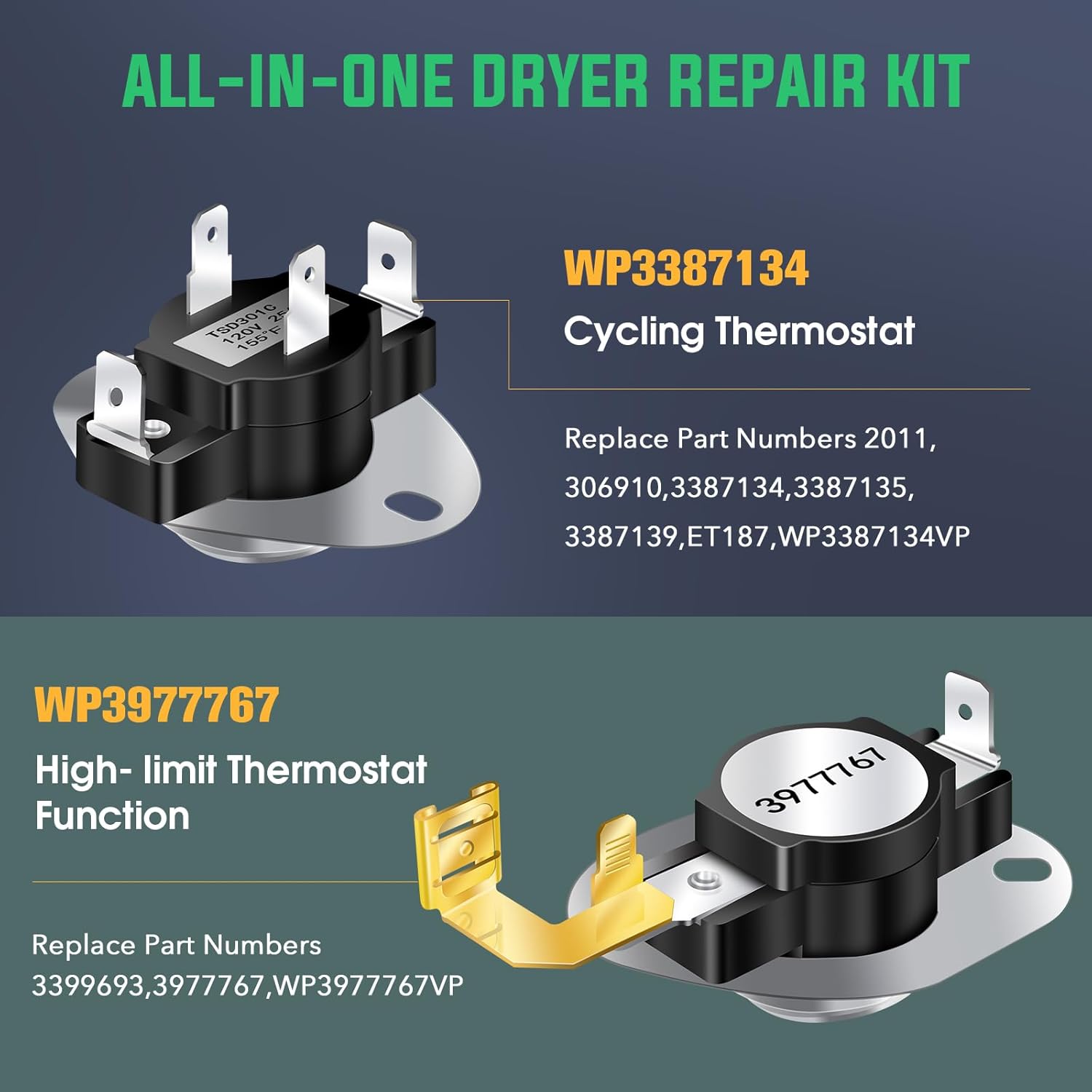 | Included Components | 279838 heating element, 3387134 Cycling Thermostat(two 3/16" terminals), 3977767 High-limit Thermostat , 3977393 Thermal Cut-off Switch and 3392519 Thermal Fuse |