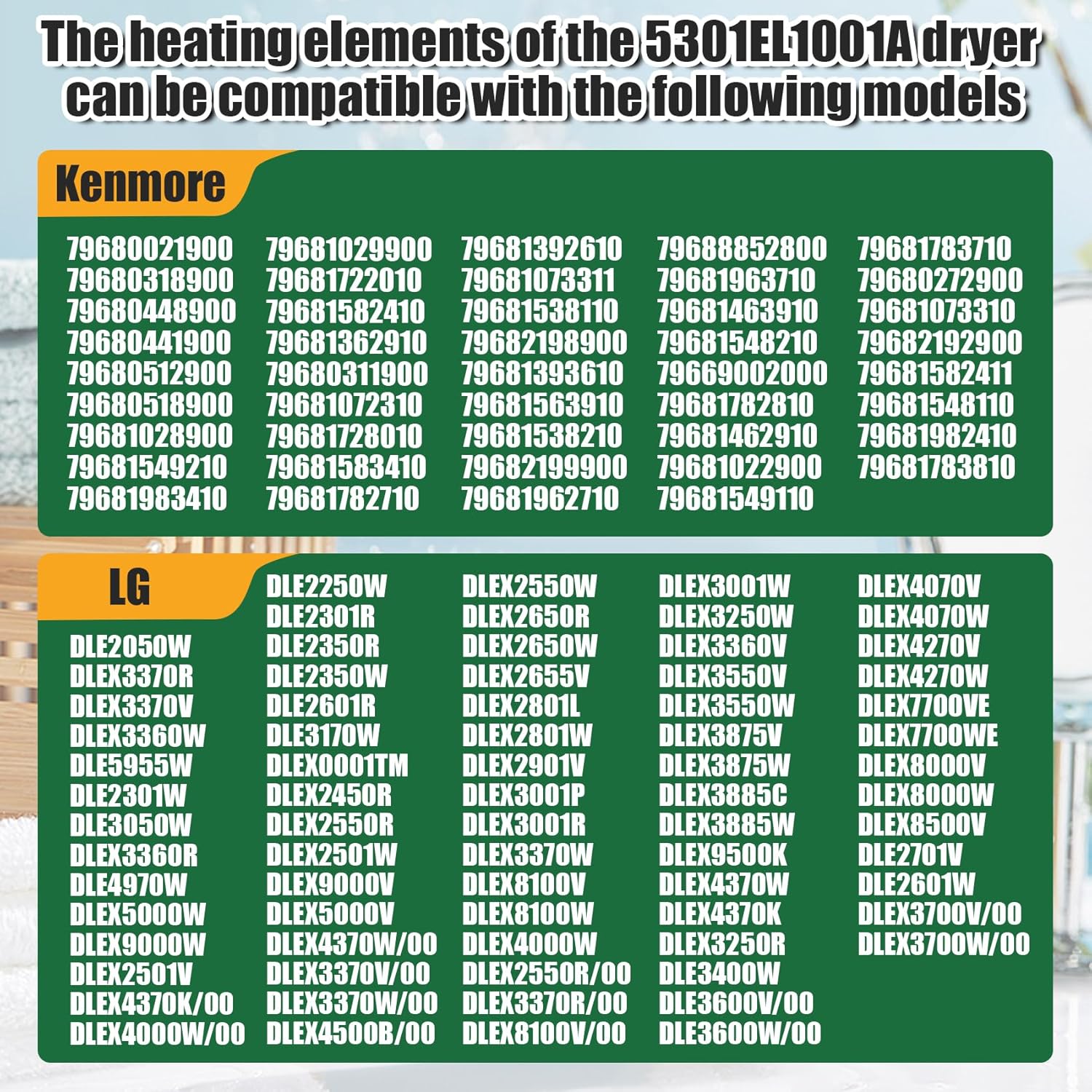 | Included Components | 5301EL1001A Dryer Heating Element |