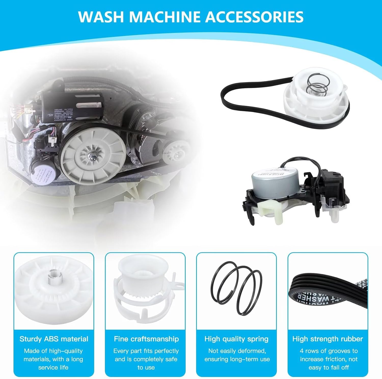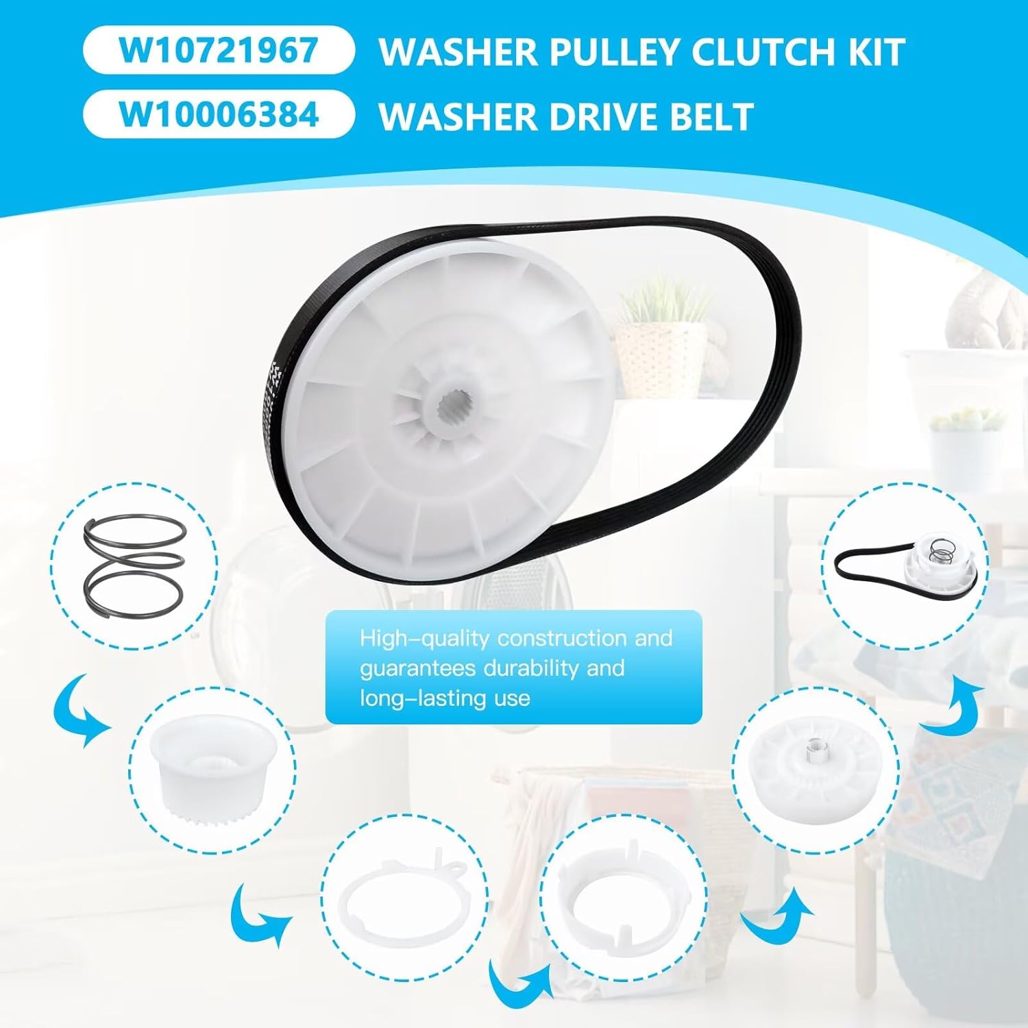 ➤Compatible Models: for Am-ana Washer NTW4516FW0, NTW4655EW1, NTW4665GW0, NTW4705EW1, NTW4755EW1, NTW4516FW1, NTW4516FW3, NTW4516FW2, NTW4519JW0, NTW4519JW1, NTW4605EW1 Fit for Cro-sley Washer CAW9244DW1, CAW9352EW1, CAW9444DW1, CAW38125HW0, CAW38125HW1, CAW42114GW2 Fit for Ing-lis Washer ITW4771EW0, ITW4671EW0, ITW4871FW2, ITW4671EW1, ITW4871FW0, ITW4871FW1, ITW4880HW2, ITW4971EW0, ITW4971EW1 Fit for Ken-more Washer 11020232711, 11022242511, 11022352511, 11022532512, 11022102312, 11022442511, 11020362810, 11025122810 11020362811, 11025122811, 11022532510, 11020232710, 11020362812, 11021112020, 11025132412 Fit for May-tag Washer MVWC416FW0, MVWC555DW0, MVWC555DW1, MVWC415EW0, 7MMVWC100DW2, 7MMVWC200DW2, MVWC465HW0, 7MMVWC416FW0, 7MMVWC417FW0 7MMVWC565FW0, MVWC465HW1, MVWC465HW2, MVWC565FW0, MVWX655DW1, NTW4516FW1, NTW4516FW3, 7MMVWC465JW0, 7MMVWC565FW1, 7MMVWX655EW1, MVW6200KW0 MVW6230HC0, MVW6230HW0, MVW6230RHW0, MVWC415EW2, MVWC465HW3, MVWC465HW4, MVWC565FW1, MVWC565FW2, MVWX655DW2 Fit for Ro-per Washer RTW4516FW0, RTW4516FW2, RTW4641BQ1, RTW4516FW1 Fit for Whir-lpool Washer WTW4616FW0, WTW4915EW1, 7MWTW4915EW1, 7MWTW9919DM2, WTW4815EW2, WTW4810EW1, WTW4616FW2, 7MWET4027HW0, 7MWGT4027HW0 7MWTW1604DM2, WET4027HW0, WETLV27HW0, WETLV27HW1, WTW4850HW1, WTW4855HW1, WTW4950HW1, WTW4955HW1, MVWC565FW0, 1CWTW4705GW0, 7MWGT4027HW1 8TWTW4955JW0, 8TWTW6000JW0, WGTLV27HW1, WGTLV27HW2, WTW4616FW1, WTW4655JW1, WTW4816FW1, WTW4850HW2, WTW4855HW2 WTW4950HW2, WTW4955HW2, WTW5000DW2, WTW5000DW3, WTW5005KW0, WTW5100HC0, WTW5100HW0, WTW5105HC0, WTW5105HW0 WTW6120HC0, WTW6120HW0, YWET4027HW0, YWET4027HW1 ➤Package Includes: 1 x W10913953 washer shift actuator 1 x W10721967 washer pulley clutch kit 1 x W10006384 washing machine drive belt