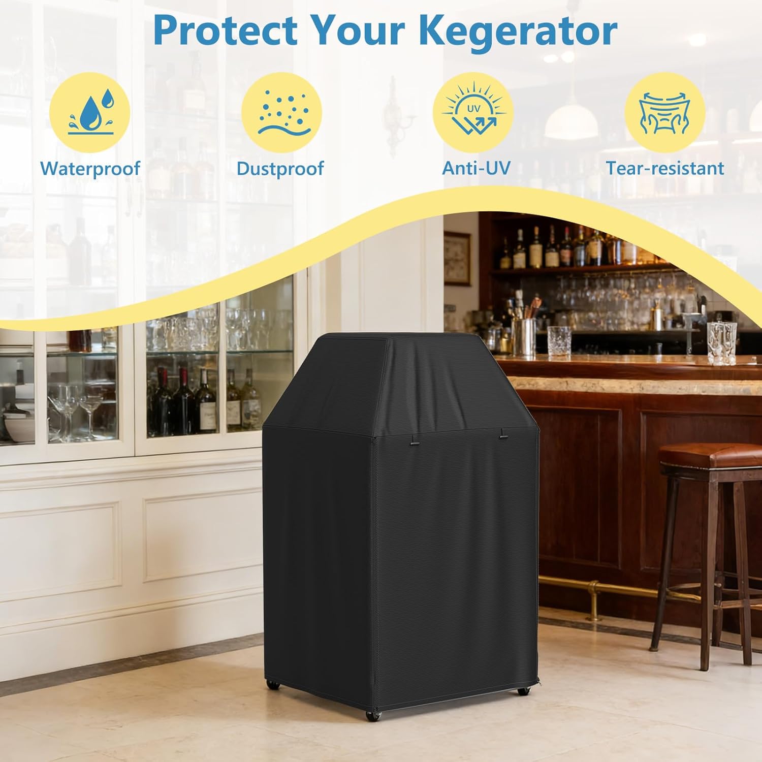 Dimensions: 24.5 inches × 26.5 inches × 47 inchesSuitable for most standard keg refrigerators, draft beer towers, and single-tap, double-tap, or multi-tap configurations;Material: Made from waterproof 420D Oxford fabric, it effectively protects your equipment from UV rays, rain, snow, dust, and corrosion, keeping your keg cooler looking brand new;Waterproof:★★★★★UV-resistant:★★★★★Tear-resistant:★★★★★Easy to clean:★★★★★The front features a dual-zipper roll-top design, allowing you to open the door without removing the cover. The adjustable drawstring at the bottom secures the cover tightly to withstand strong winds. When folded, it is compact and comes with a storage bag for convenient storage.