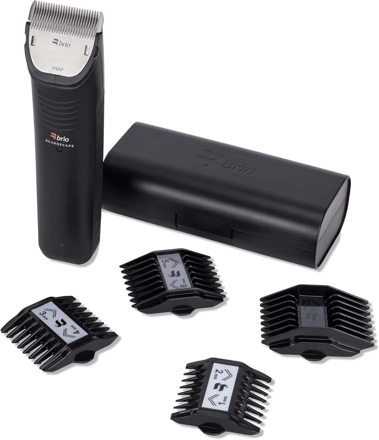 Brio Snap System transforms your grooming routine with precision, convenience, and versatility. The Snap Blade features a magnetic locking system for quick attachment and secure stability, along with a durable, reinforced design that maintains sharpness over time. Paired with four double-sided Snap Guards, you’ll unlock 32 cutting lengths from 1mm to 14mm—perfect for any beard style. The thicker plastic guards ensure long-lasting use and nest compactly for easy storage. Compatible with the Beardscape V1 and V2, this system offers smooth, customizable trimming whether you're at home or on the go. No clips, no clutter—just snap and groom.