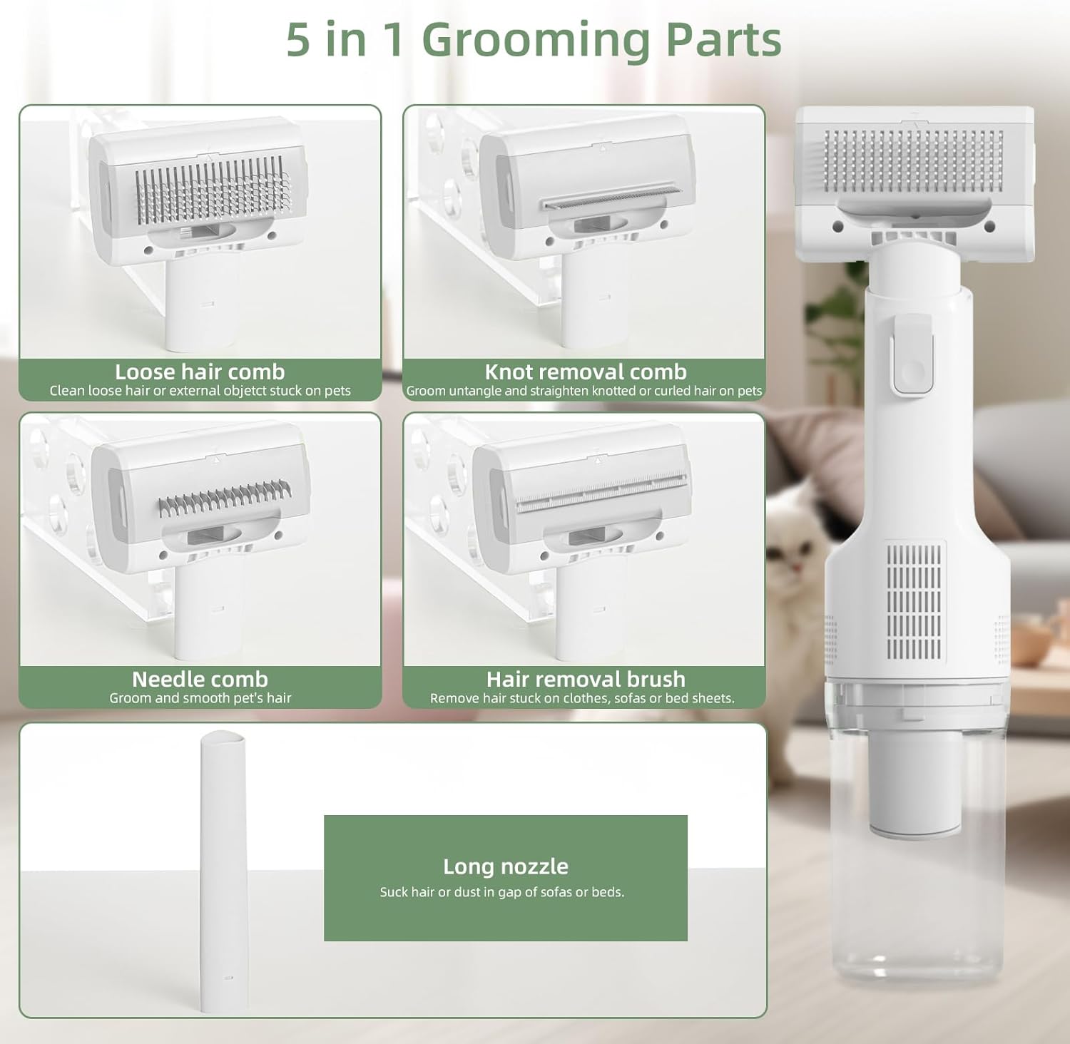 | Included Components | 1 x Manual, 1 x Pet Grooming Vacuum, 1 x Type C Cable, 5 x Attachments |