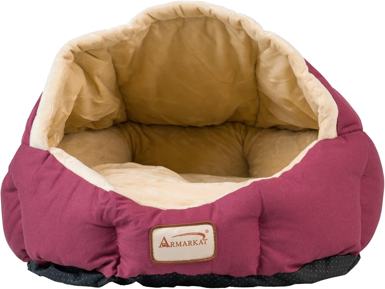 Armarkat Model C08HJH/MH pet bed features durable canvas and luxe velvet. Offered in a beige and burgundy color combo, this bed can be used by cats or extra small dogs. It has a machine washable cover and a core of extra-thick, 100% polyfill for maximum comfort. The base is waterproof and won’t skid around the house. Inside padding is machine washable. Six months manufacturer’s warranty against defects. Dimensions: 18"(L) x 14"(W) x 11"(H)