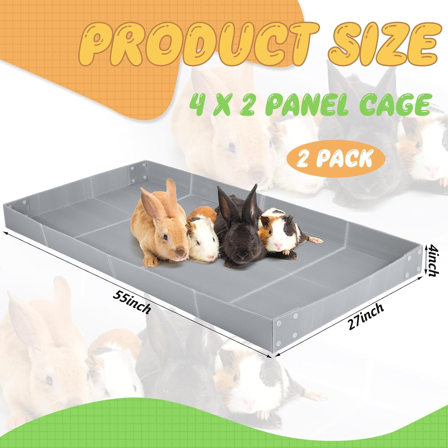 Features: This corrugated plastic cage liner base ensures the comfort and safety of your pets. With the feature of effective protection from hard surfaces, it ensures your pet will not get hurt while roaming around or resting. Thanks to the generous size, our guinea pig corrugated plastic cage liner offers ample capacity for your pet's needs. It ensures your pets have plenty of room to play and relax, providing them a happier life, suitable for small animals like guinea pigs, hedgehogs, rabbits and so on. Specifications: Material: plastic Color: grey Size: about 55 x 27 inches/ 140 x 68.6 cm Side height: about 4 inches/ 10 cm Package includes: 2 x Guinea pig cage liner base (with accessories) Notes: Manual measurement, please allow slight errors on size. The color may exist a slight difference due to different screen displays. Please keep away from small kids in case of choking risk