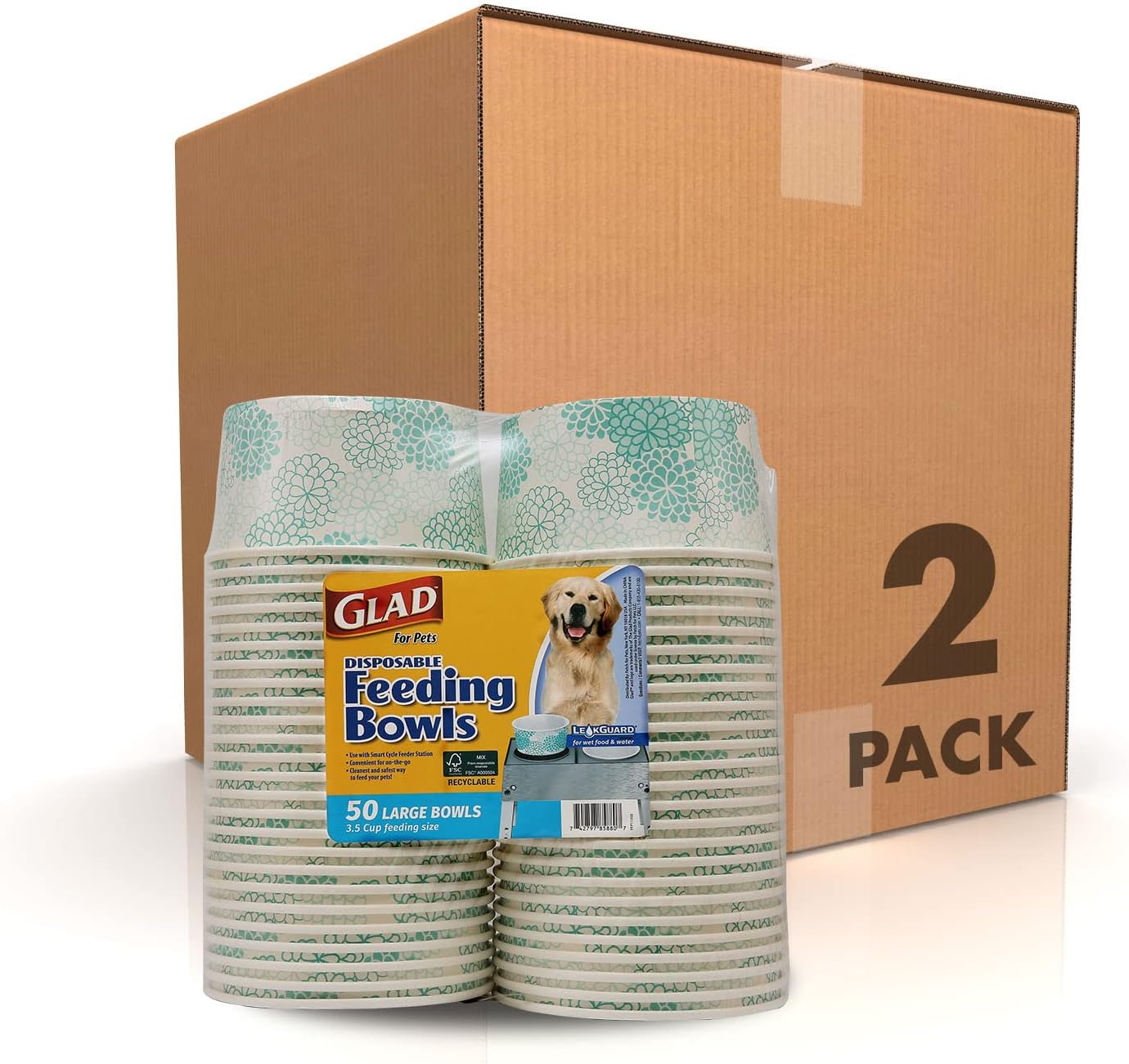Feeding your pet on-the-go has never been easier. Glad for Pets Disposable Feeding Dog Food Bowls are your pet's perfect companion for both travel and everyday use. These dog bowls are made with leak-proof recyclable FSC-certified paper making them safe for your pup and the planet. Dog food bowls are available in sizes small and large in both 25 and 50 count packs to suit your needs. Made from high-quality materials these dog food and water bowls are leak-proof. Put your furry friend's favorite wet or dry food inside these pet food bowls without worrying that it'll leave behind a soppy mess. Perfectly sized these disposable pet bowls hold just the right amount of food for your buddy. They're easy to use and great for maintaining a sanitary environment for you and your pup. Even though it's important we know how much of a hassle it is to regularly clean your dog's food bowl. Simply throw away these dog food and water bowls after use. Use these disposable pet bowls on their own or as an insert with the Glad for Pets Feeding Station.Dog water bowls like these dog bowls go great with wet dog food, dry dog food, water, and treats. These are not ceramic dog bowls or collapsible doggy bowls but they can be elevated dog bowls or a raised dog bowl when paired with the Glad feeding station for pets. Dog dishes could be dog bowls for large dogs and dog bowls for medium sized dog and dog bowls for small dogs. YOUR SATISFACTION IS OUR PRIORITY: If you have any questions or feedback on this product, please reach out to us via email.