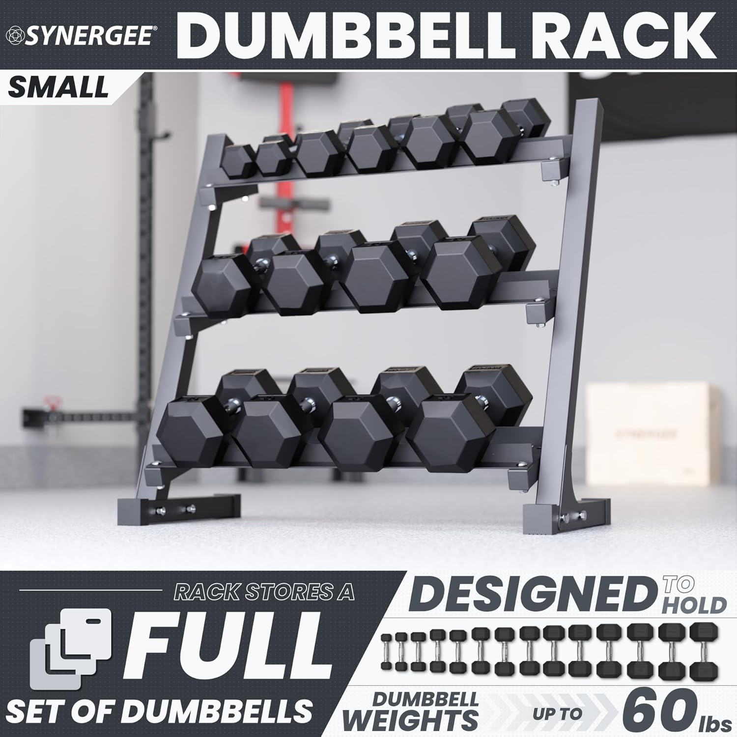 What’s better than a set of sleek, sexy dumbbells? A set that’s perfectly organized on a space-efficient, easy-to-assemble Synergee Dumbbell Rack! Available in two sizes — 38” or 46” (L) x 18” (W) x 36” (H) — this rack features three tiers of adjustable shelving, with shelves measuring 33.5” or 41.5” long and dumbbell holders spaced 4.1”–5.1” apart. It keeps your dumbbells off the floor, easy to grab, and neatly sorted. No more toe stubs or digging for pairs — just a clean, efficient gym setup. Assembly is a breeze, with everything you need in one box and simple instructions. Your future self will thank you.