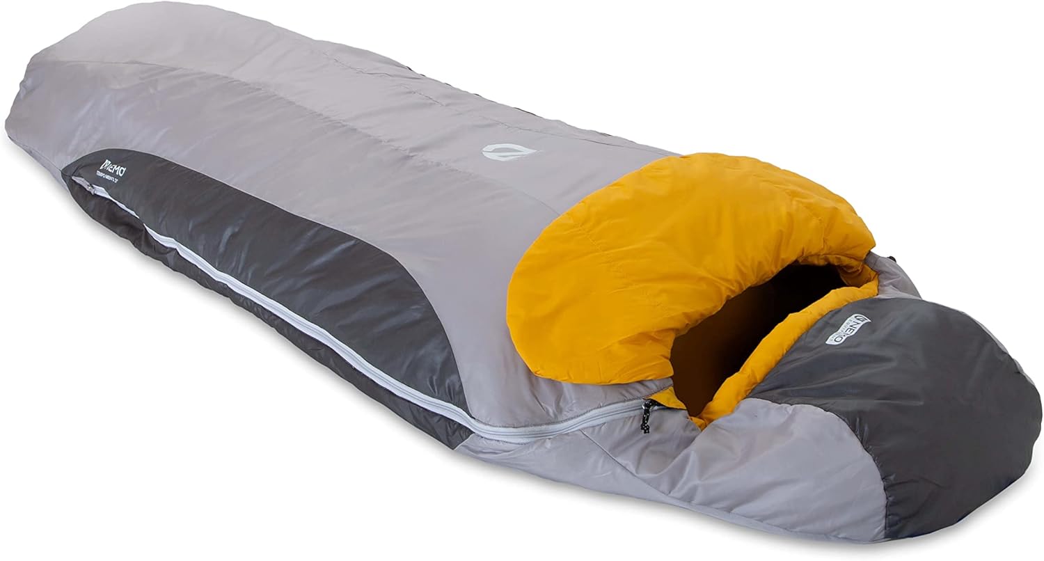 A feature-loaded bag for new adventurers and seasoned campers alike, Tempo joins our Endless Promise collection and is now offered in NEMO’s most popular Classic Spoon shape to provide the perfect balance of comfort and packability.NEMO’s Classic Spoon shape continues to be a game changer for side sleepers, offering more room at the knees and shoulders for a less-constricted feel that accommodates even restless sleepers who shift positions throughout the night. Despite this extra room, Tempo is still more packable than a traditional rectangle bag and saves space in your pack or trunk.The included Blanket Fold draft collar provides extra comfort and makes it easy to quickly regulate temperature even during finicky shoulder seasons. Tucked in, the draft collar defiantly blocks any chill while mimicking the cozy feel of your bed at home. Pushed out, it helps dump excess heat instantly. Tempo also features an integrated Pillow Pocket in the hood to perfectly fit a Fillo or folded-up extra layers — and it’s made using the same buttery-soft fabric as our camp pillows.Constructed from a suite of recycled fabrics and filled with 100% recycled Zerofiber 650 synthetic fill, Tempo continues to exemplify NEMO’s commitment to reducing resource consumption and keeping our gear out of the landfill. Manufactured from a single type of material, this sleeping bag is fully recyclable at the end of its life — just send it back to NEMO, and we’ll handle the rest.