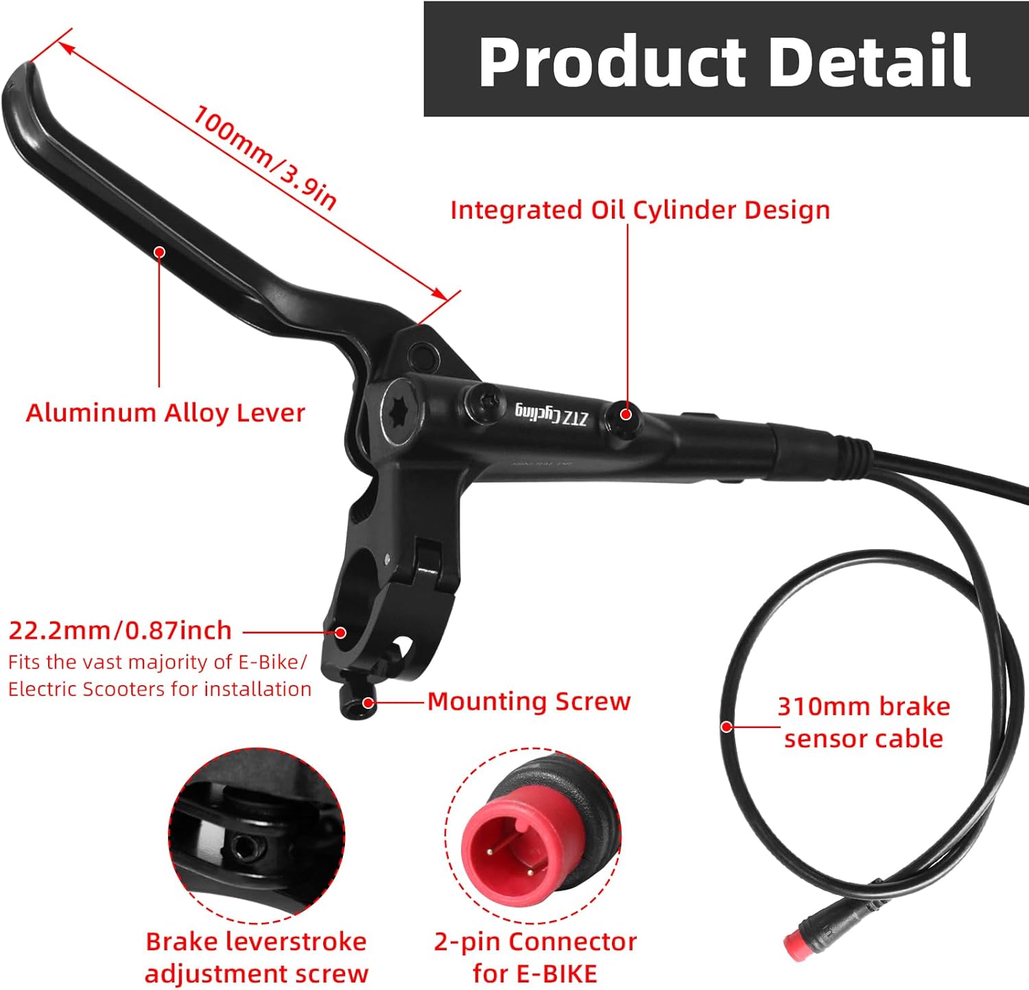 Take control of your e-bike's stopping power with this professional 2-piston hydraulic disc brake set. This complete braking system delivers reliable, consistent performance for both casual riders and adventurous cyclists. The dual-piston design provides enhanced modulation and stopping force compared to mechanical brakes, giving you the confidence to tackle varying terrain. The hydraulic system requires minimal maintenance while offering smooth, responsive brake engagement. Perfect for upgrading your existing e-bike or building a custom setup, this comprehensive kit includes all necessary components for installation. The ergonomic lever design reduces hand fatigue during long rides, while the precision engineering ensures reliable performance in various weather conditions. Whether you're commuting through city streets or exploring off-road trails, these hydraulic disc brakes deliver the stopping power and control you need for a safer riding experience.