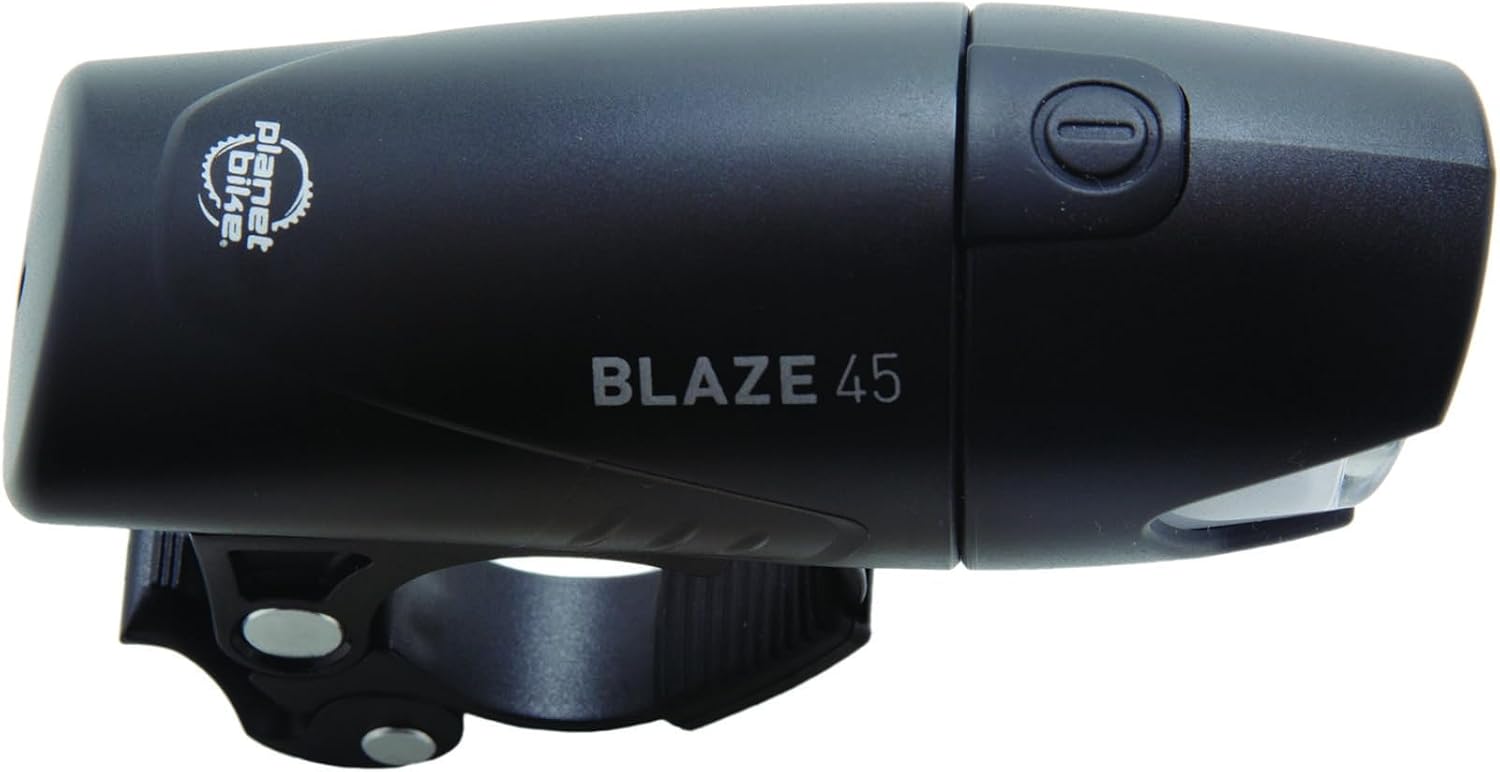 Product Description Planet Bike's Blaze® 45 and Superflash set is a great combo for urban biking. Great optics and ample lumen output get you noticed by drivers, pedestrians and other cyclists. Amazon.com Notify drivers and other cyclists of your presence from up to 1 mile away with the Planet Bike Superflash taillight and Blaze headlight set. Equipped with a half-watt Blaze LED light for the front and a combo LED set for the back, the set provides wide visibility in both flashing and steady modes, depending on your preference. In addition, the rear Superflash light--which includes three half-watt Blaze LEDs and 2 eXtreme LEDs--clips to just about anything, with bike mounts and a clip mount to get you started. As a result, you have no excuse to see poorly or go unseen while riding. Each of the two lights runs for up to 100 hours per battery set (2 AAs for the Blaze and 2 AAAs for the Superflash, included) and is backed by a limited lifetime warranty. About Planet Bike Planet Bike was founded in Madison, Wisconsin, in November of 1996. In many ways, Planet Bike began as a social experiment first and foremost, with a dedication to doing business in a different way. Instead of being just another company that develops and sells products with profit as its end goal, Planet Bike wanted to help bring about positive change for people, their communities, and the environment. The people at Planet Bike have always believed that the bicycle has great potential to help improve the world and the lives of the people in it. From the start, they have embraced an alternative corporate purpose that seeks to help get more people on bicycles by making communities friendlier places for the self-propelled. By donating 25 percent of company's profits to causes that promote and facilitate bicycle usage, Planet Bike hopes to make an impact. Social experiments aside, Planet Bike was born from the heart of a cyclist with a goal of making innovative, high quality, and practical bicycle accessories. Simply put, the company strives to design and develop the best bicycle products in the world. In the company's short 10-year history, it has made a number of important product innovations within the bicycle industry. Advancements include the four-line computer, which is now a standard in the industry, and the world's first self-contained HID light. Not bad for a company that started as a one-man operation more than a decade ago. While still a small company, Planet Bike continues to evolve and improve its product line with the goal of always striving to build accessories that make it easier for people to ride their bikes. Since 1996, Planet Bike's financial support of the grassroots bicycle movement has totaled $500,000. By 2010, Planet Bike has made a goal to donate $1 million to organizations that are dedicated to making America a friendlier place for cyclists.