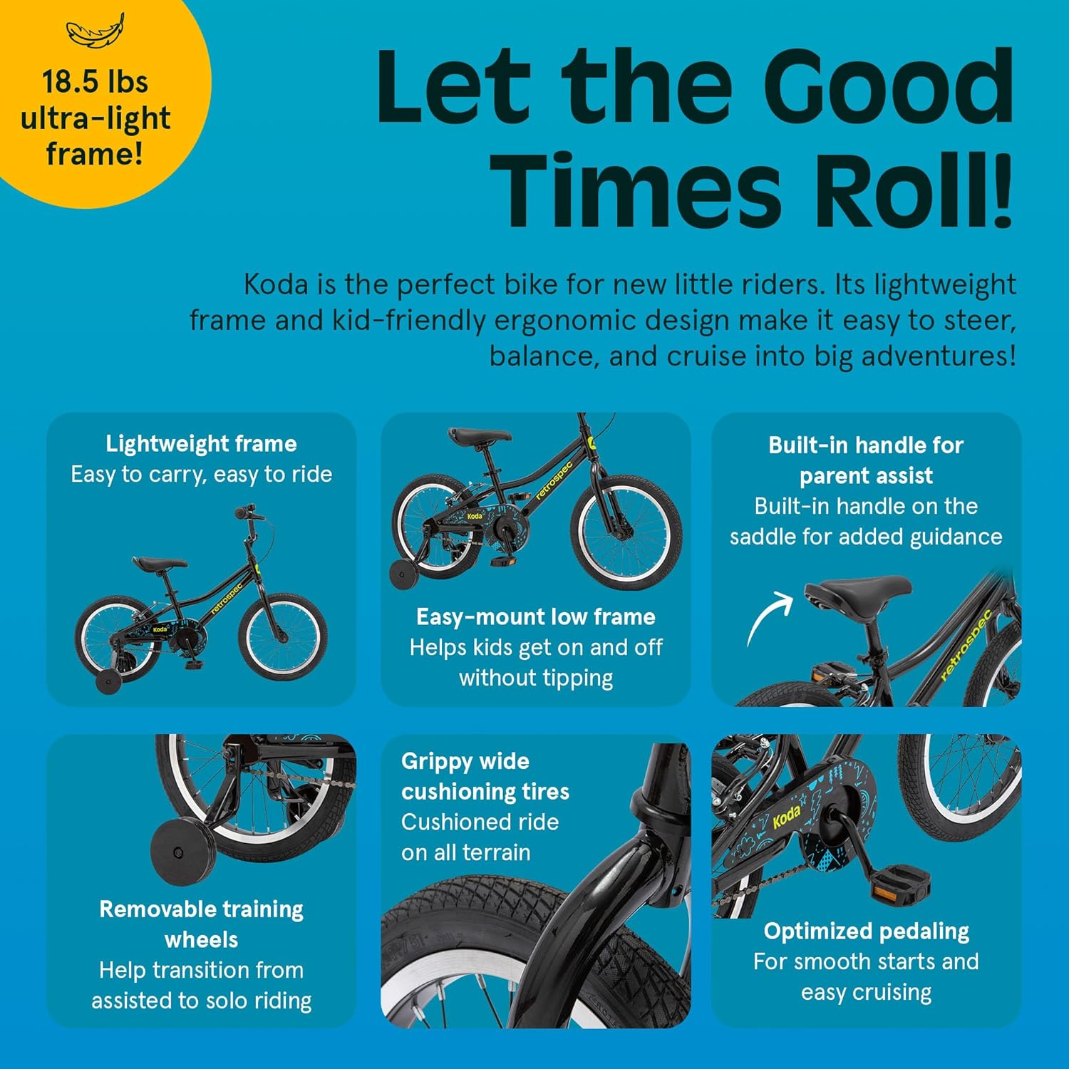 | Model Name | Koda 16in Kids Bike With Training Wheels - Adjustable Height Beginner Bicycle for Ages 4-6 - Dual Brake System, Safety Bell & Reflectors - Lightweight 18.5lb Frame |
