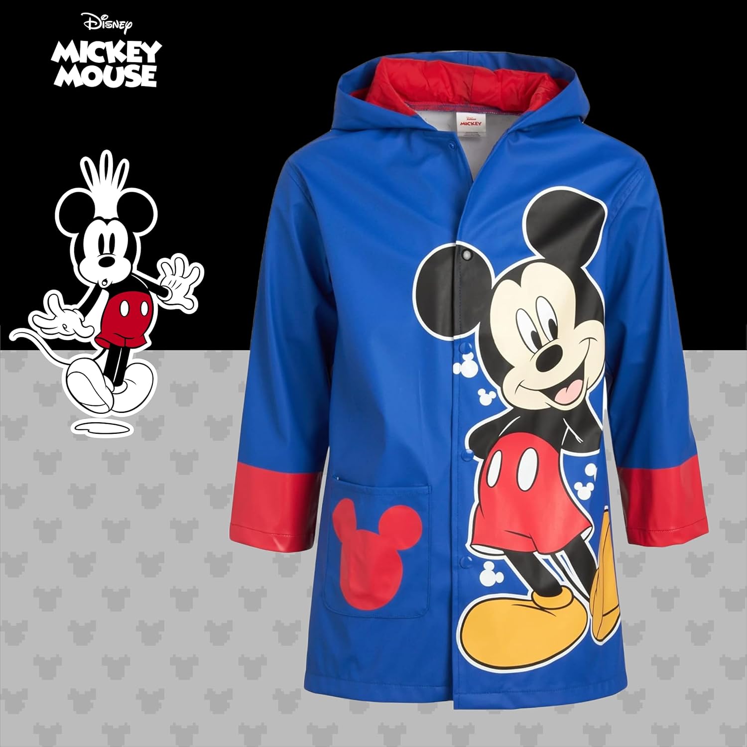 • BOYS' DISNEY RAINCOAT: This multipurpose and versatile Disney raincoat is a must-have for your boy that will help him stay safe from the elements when the weather changes suddenly; Perfect Mickey Mouse jacket for all little fans of the Disney cartoons and characters; Featuring a big and vibrant Mickey Mouse print, this rain jacket is the perfect Disney merchandise for your toddler