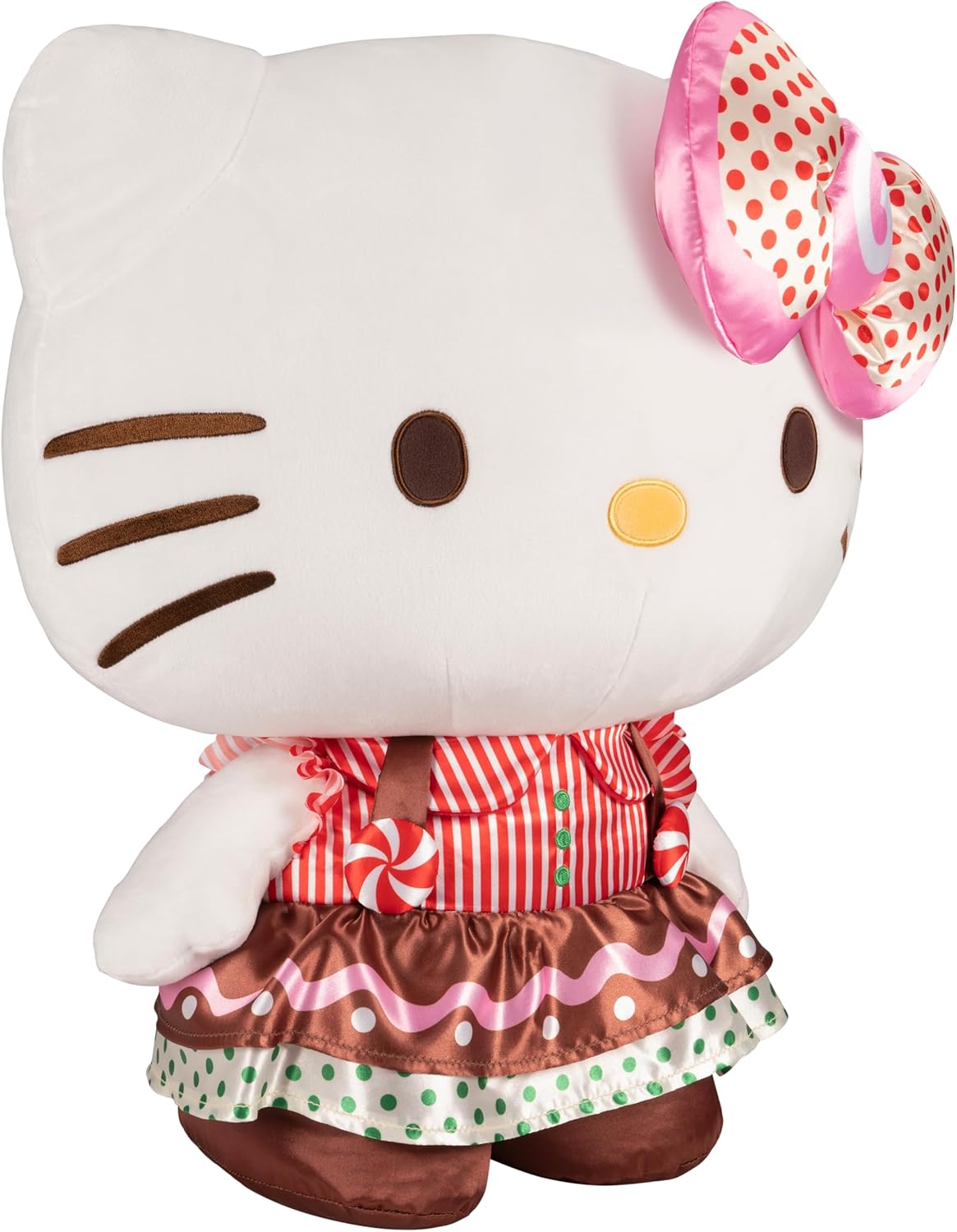 Introducing the Hello Kitty Large Plush, the perfect festive companion for this holiday season! Standing at 24 inches, this adorable plush features Hello Kitty in a playful gingerbread dress with a matching candy bow, and a perfectly decorated gingerbread man in hand. She’s ready to spread holiday cheer. Hello Kitty is part of the exclusive 24” Holiday Plush Series alongside My Melody, making them the ideal pair for your Christmas celebrations. Collect both (sold separately) to create the ultimate holiday duo! Perfect for gifting and cuddling, she’s sure to be a hit with fans of all ages.