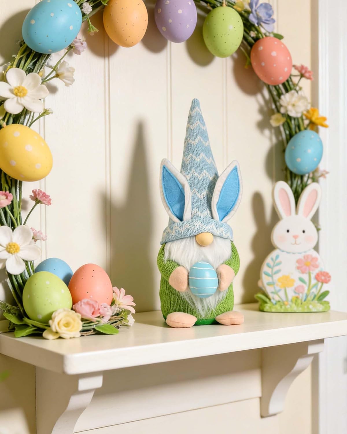 Easter Decorations Indoor – In folklore, the Easter Bunny gnome brings good luck to families. Add festive charm to your home with these adorable Swedish tomtes. Perfect for decorating tiered trays, desks, tables, sofas, shelves, and more.