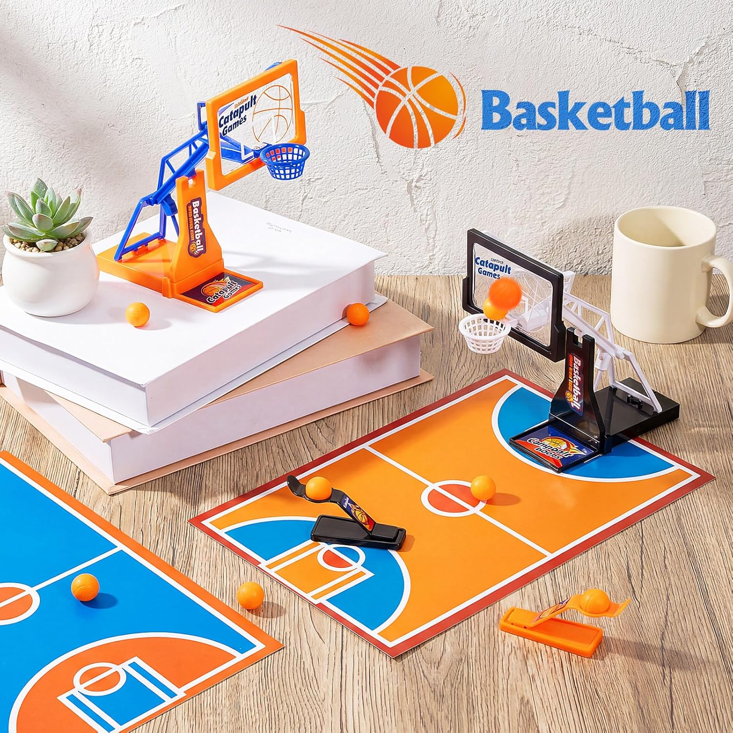 Features: The tabletop basketball toy set is suitable for a wide range of occasions, including tabletop games, game competitions, birthday gifts, holiday gifts, basketball themed parties, and game themed parties. It's an addition to your entertainment options. Whether playing with a friend, this basketball game indoor is a recipe for fun. Specifications: Material: pp polypropylene plastic Color: bright color Size: Basketball hoop: about 6.7 x 4.72 x 3.74 inches/ 17 x 12 x 9.5 cm Basketball court: about 11.8 x 7.9 inches/ 30 x 20 cm Mini basketballs: about 0.6 inch/ 1.5 cm Package includes: 24 x Basketball hoops 24 x Basketball court 96 x Basketballs 24 x Launcher Notes: Manual measurement, please allow slight errors on size. The color may exist a slight difference due to different screen displays