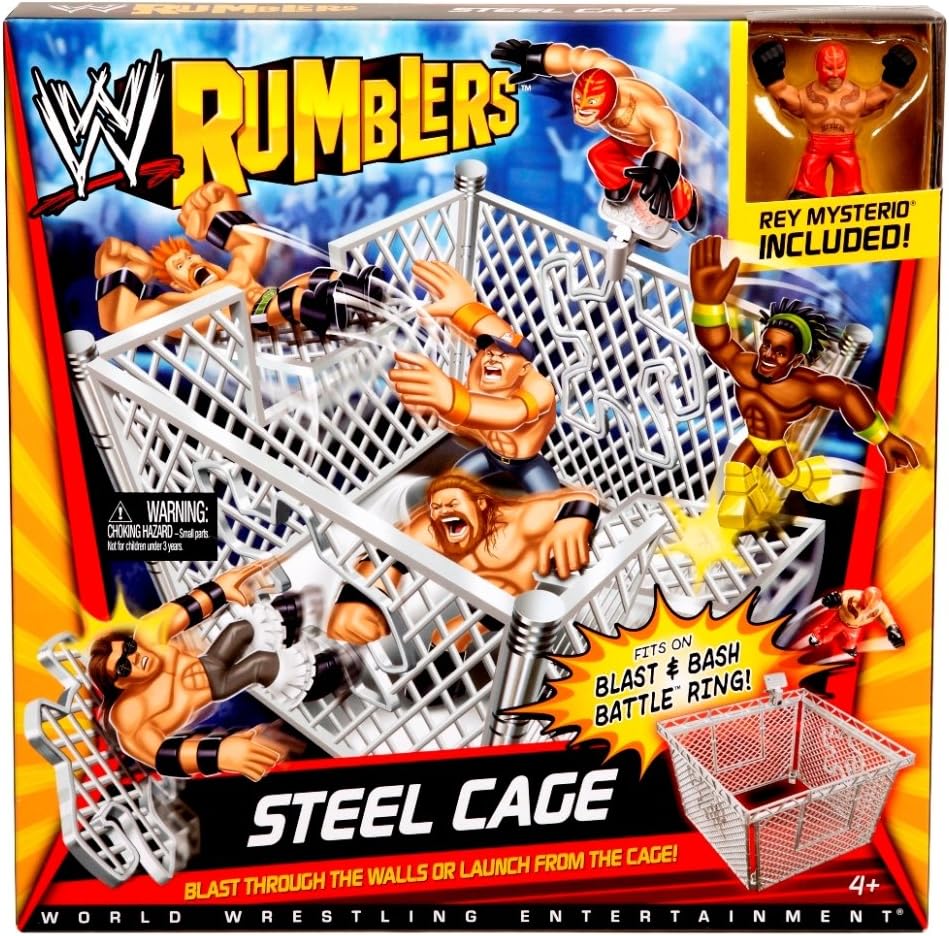 World Wrestling Entertainment Rumblers Figure with Deluxe Accessory: Although these WWE figures may be small, they can rumble with the best of them. Each mini figure features small-scale Superstar styling and 4 points of articulation along with the deluxe accessory, a Steel Cage to re-create the action of WWE. Launch in, jump off or blast through the Steel Cage for extreme brawling action. Fits on Blast and Bash Battle Ring for the ultimate cage match.