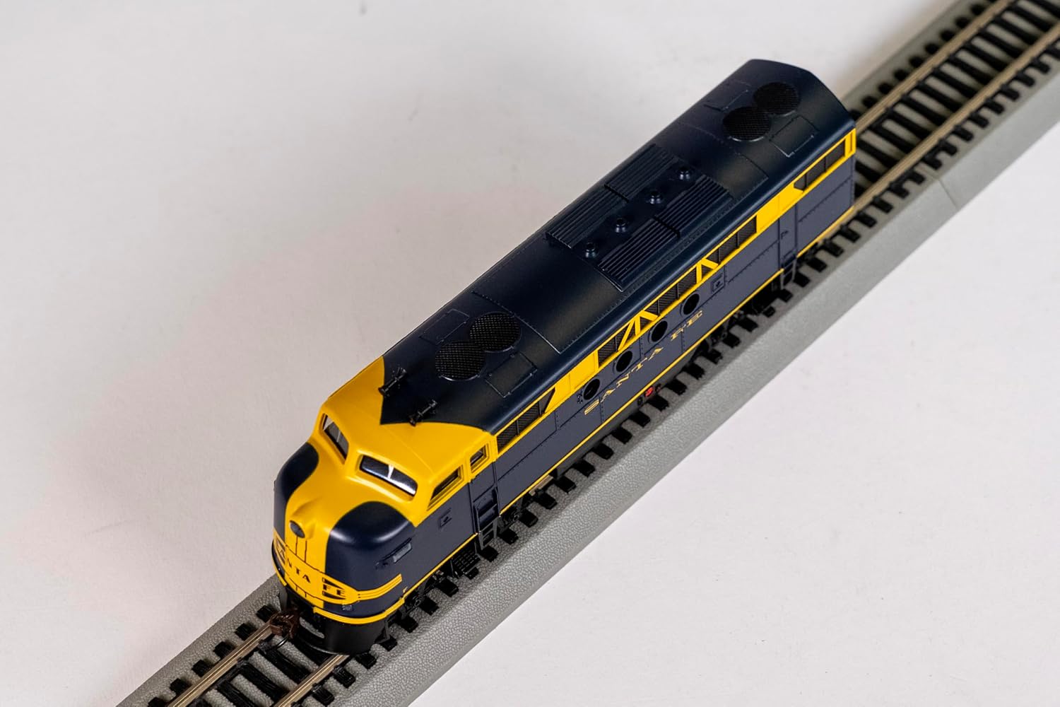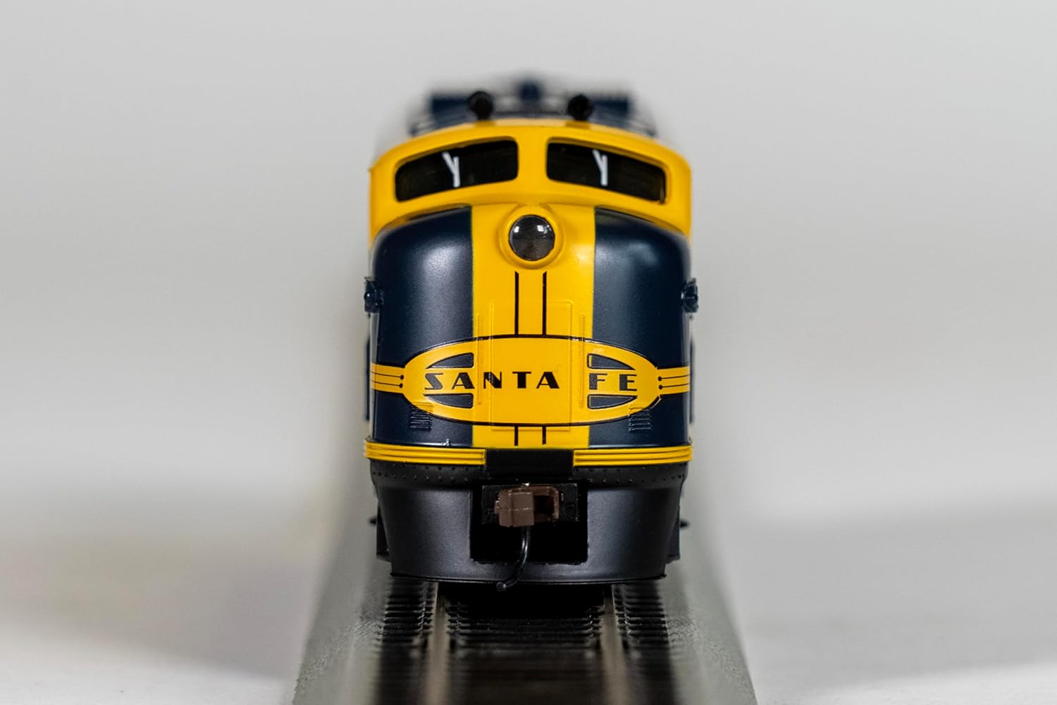 F7A DCC READY LOCOMOTIVE - SANTA FE - BLUE & YELLOW - Ho Scale. Produced by EMD beginning in the late 1930’s is credited by historians as one of the most important locomotives of all time. The first of the EMD’s widely popular F-series diesel locomotive designed for freight service, it was successful in convincing rail systems across the United States that diesel locomotives were the future of rail travel and worthy of replacing long-used steam locomotives. This Bachmann F Unit is DCC ready with a factory-installed 8-pin socket for DCC decoder installation of your choice (Decoders sold separately). Additional features include Die-cast chassis, operating headlight per prototype, teardrop windows, separate windshield wipers, and E-Z Mate® Mark II couplers. Performs best on 18" radius curves or greater.