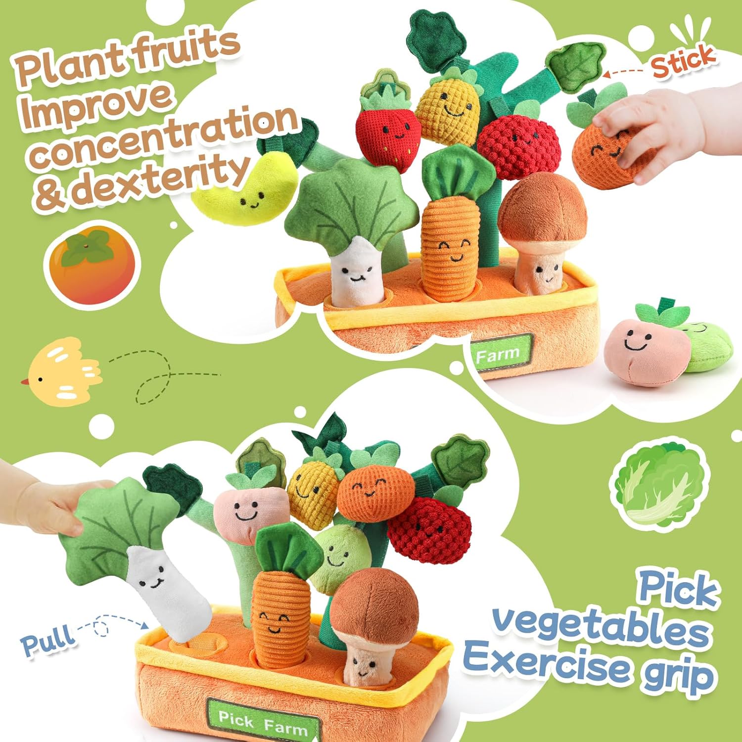 | Included Components | fruit toys, matching game mat, soil & tree toys, vegetable toys |
