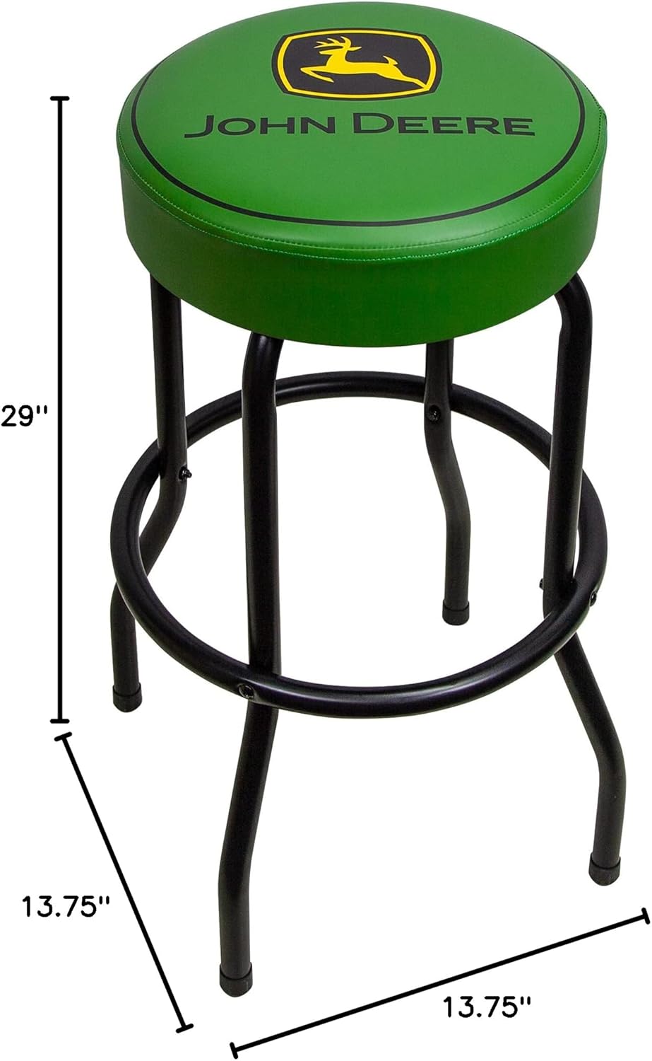 Plasticolor’s John Deere Logo Garage or Game Room Stool comes in a quality and depth of detail that really make them stand out and are perfect for your garage, game room or workstation. The 3.50” tall cushion top measures 13.75” in diameter, providing plenty of cushion. Overall height is a comfortable 29.00 inches. This Listing is for one (1) stool. Officially licensed by John Deere. All metal leg construction provides support up to 250lbs. All hardware included and minimal assembly is required. This stool will add the perfect custom touch to any true fan.