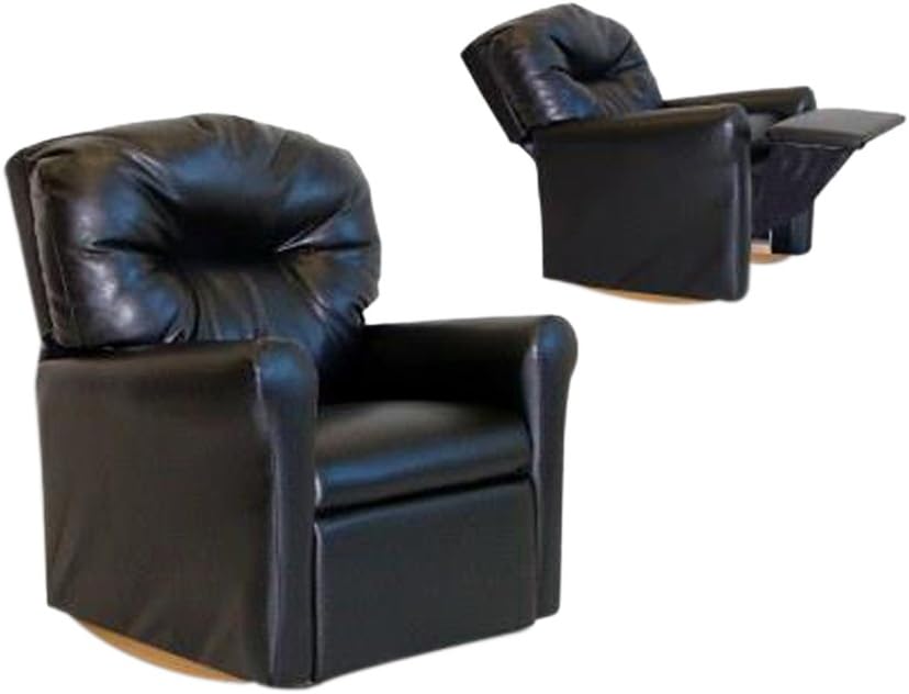 This Contemporary Black Leather Like Child Rocker Recliner Chair will make a statement in any living room. This recliner is perfectly suited for the perfect child. Our high-quality recliner comes in a very elegant, kid-durable, soft leather-like fabric which makes cleaning up crumbled cookie crumbs a snap. Bring home some smiles and expect someone you love to recline. Bring home the Black Rocker Recliner Chair today. Add a little rock to your little one's favorite afternoon show.