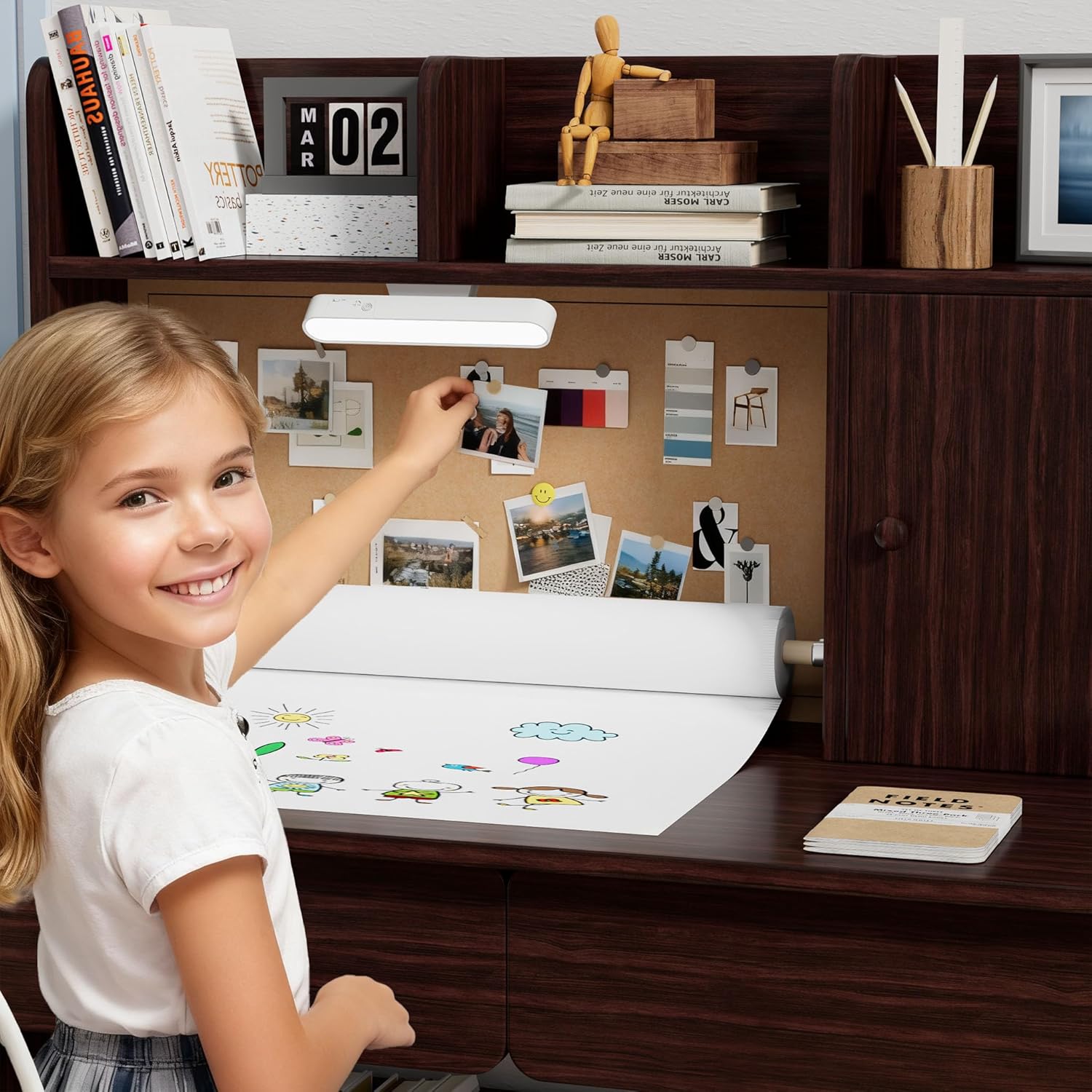 Our Kids Study Desk and Chair Set with Hutch and Drawers offers a perfect place for working on art projects or finishing up their homework. The multiple storage options also help keep bedrooms tidy and organized, which mom and dad are sure to love. Features include. The Kids Study Table with Chair gives young students a perfect space for finishing homework, studying, or working on craft projects. This kid's desk and chair set comes with a clipboard, a cabinet, with 4 Drawers & 4 Open Hutch for Easy Access Storage, The desk offers you ample space to keep books, documents, and other things, suitable for adults and children.CLASSIFIED STORAGE: The large desktop is suitable for putting books or a laptop while the hutch and the open drawers provide extra storage space to keep all learning supplies in order and create a neat and personal studying environment by placingPremium Wood Design: Made of premium pine and MDF with great durability for a long time Use drawers featuring additional options for putting books, papers,etc-Large and smooth tabletop that can hold plenty of things and is convenient to cleans-Compact design which saves a lot of space and ideal for small places-Easy to assembleMaterial: MDF.Weight Bearing of Desk: 176 lbs.Weight Bearing of Chair: 220 lbs.Package includes:1X Desk1X Chairn performing the exercises. It provides great stability and durability.