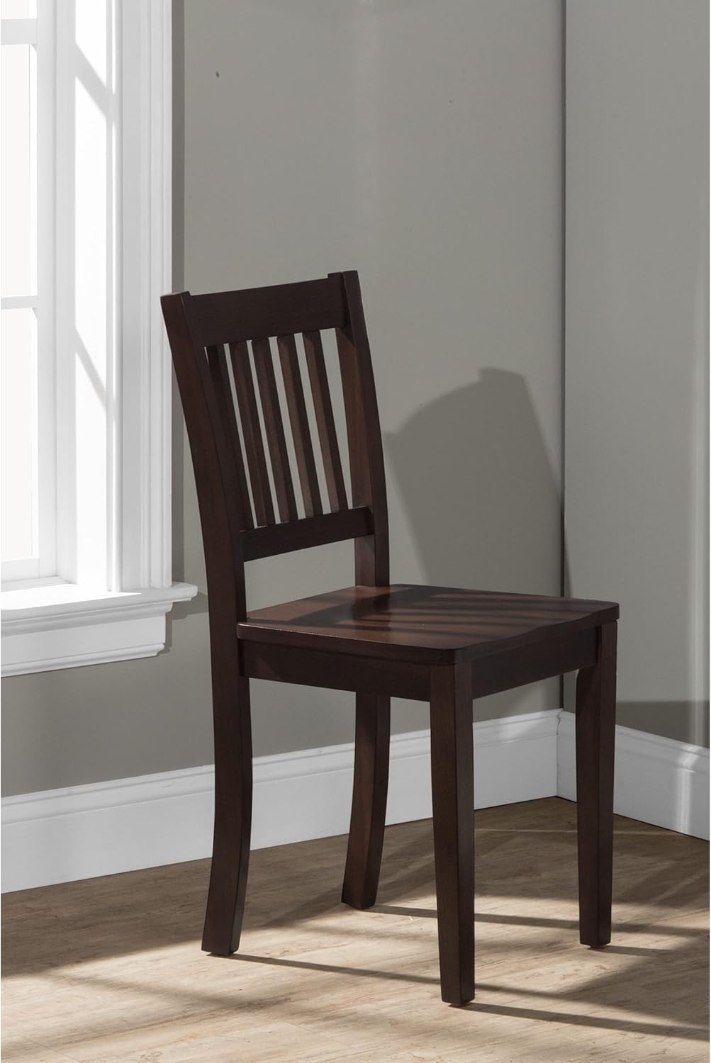 Timeless Mission-style design makes this youth desk chair an ideal addition to any workstation. The contoured seat and slanted back provide maximum comfort whether your child is working diligently on homework or indulging in their new hobby. Featuring a ladderback design, this classic style will endure for years, while the handsome chocolate finish pairs well with any bedroom decor. This wooden chair complements most youth desks. Includes desk chair only. Assembly required.