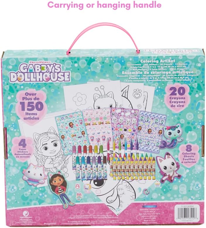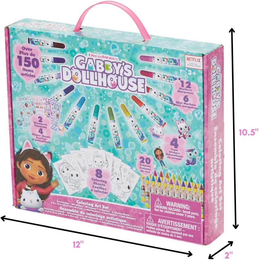 Gabby's Dollhouse Coloring Art Set for Kids with Stickers and Stampers, 150+ pieces