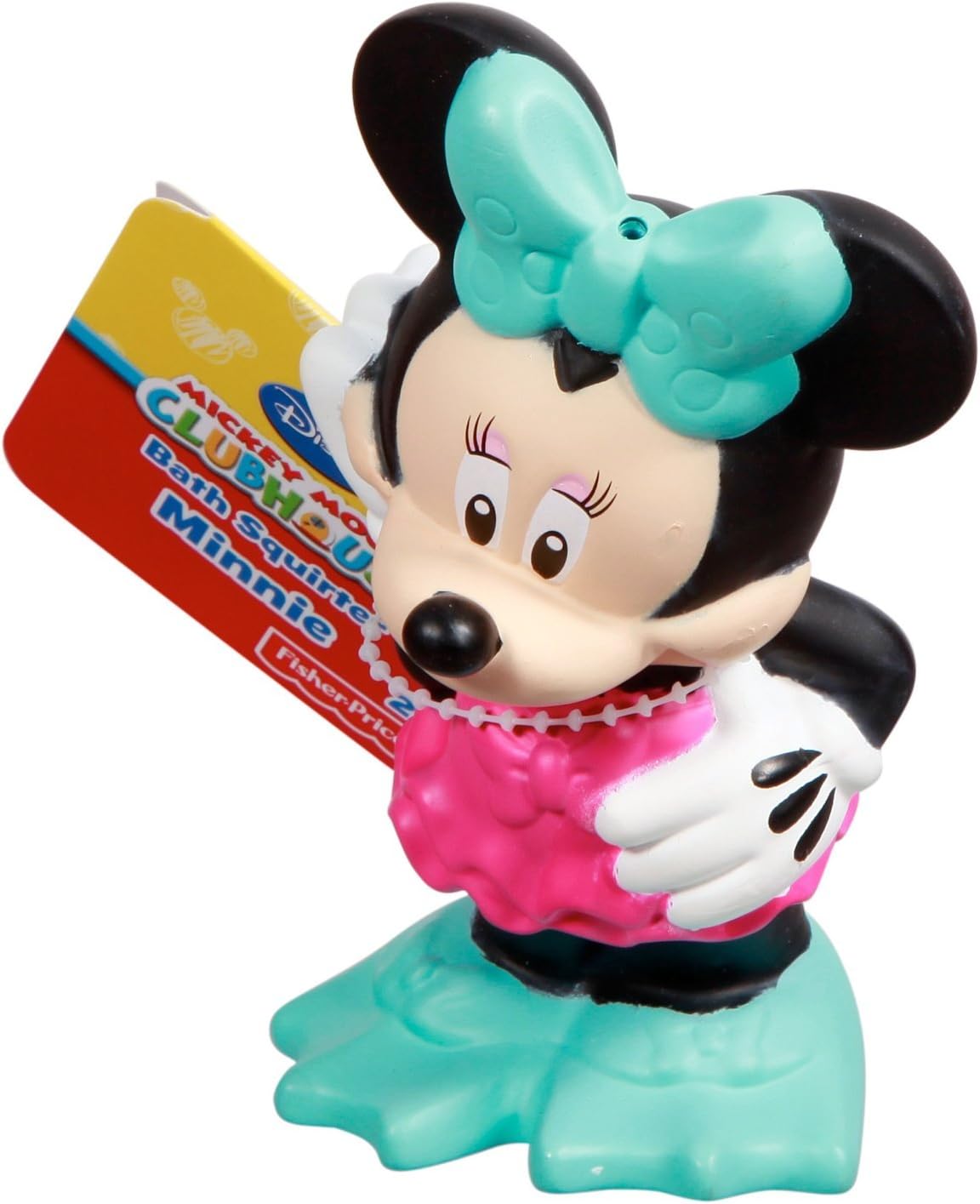 Disney Mickey Mouse’s friend Minnie Mouse is riding into your bath wearing her pretty pink bathing suit and swim fins, ready to join you for some fun in the tub! Playtime meets bathtime with Bath Squirter Minnie. Squeeze the figure to fill it and make it squirt out water! Part of an assortment of 5 different bath squirters: Bath Squirter Mickey, Donald, Daisy, Pluto, and Minnie. Each squirter sold separately and subject to availability.