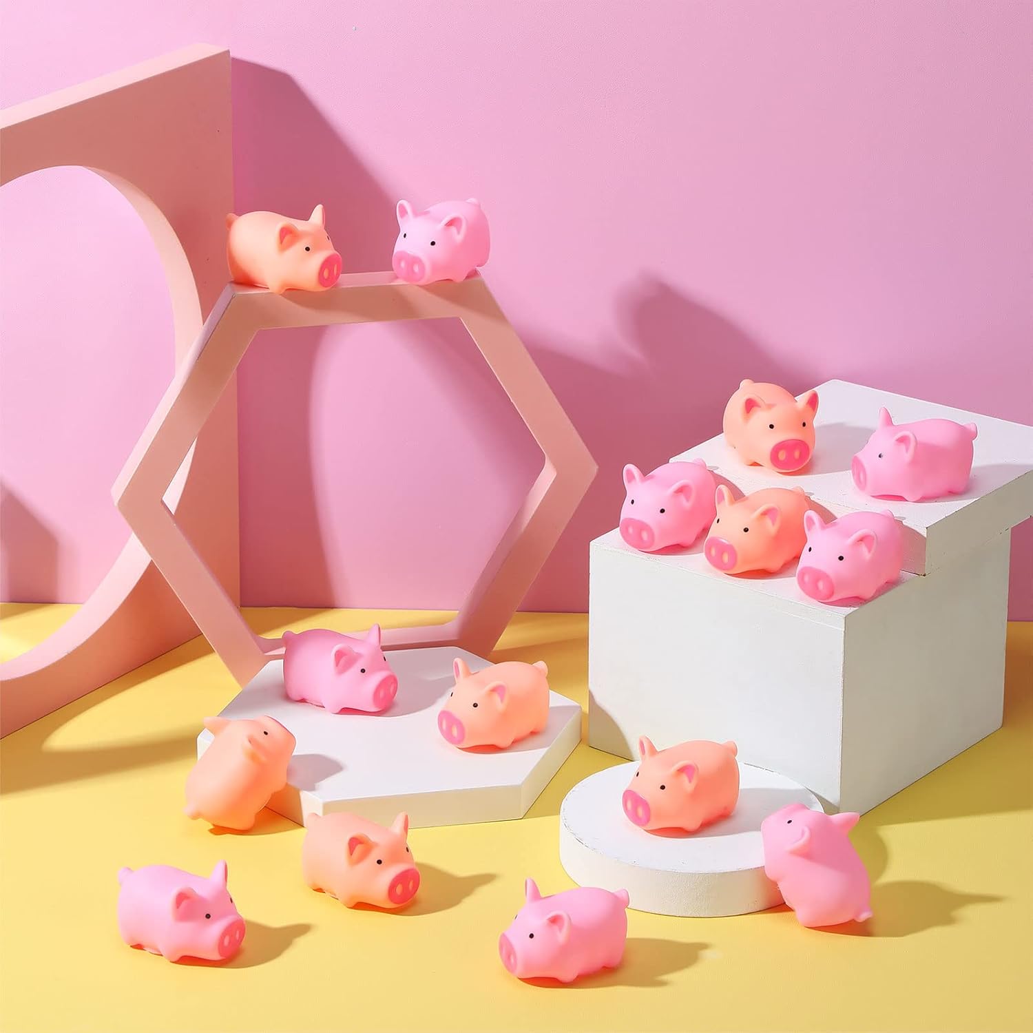 Features: The pink rubber pig is designed in cute piggy shape, which can enhance familial relationship, allowing you to enjoy bathing and experience the fun of it. Mini pig can also be applied as furniture decorations to embellish the bathroom toilet, room bedroom or to be placed in the living room, lively and interesting. Specifications: Material: rubber Color: pink Size: about 1.96 x 1.37 x 1.25 Inch each Package includes: 200 x Pink rubber pigs Notes: Manual measurement, please allow slight errors on size. The color may exist a slight difference due to different screen displays