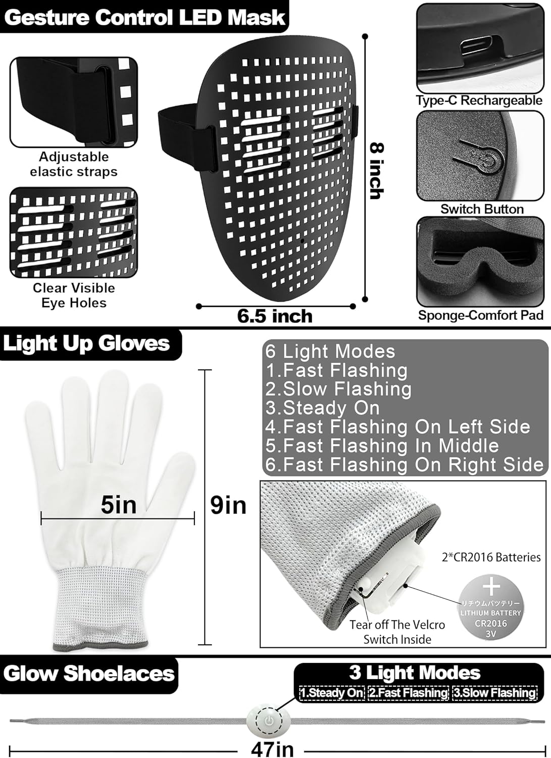 | Material | Plastic (Mask), Polyester (Gloves And Shoelaces) |