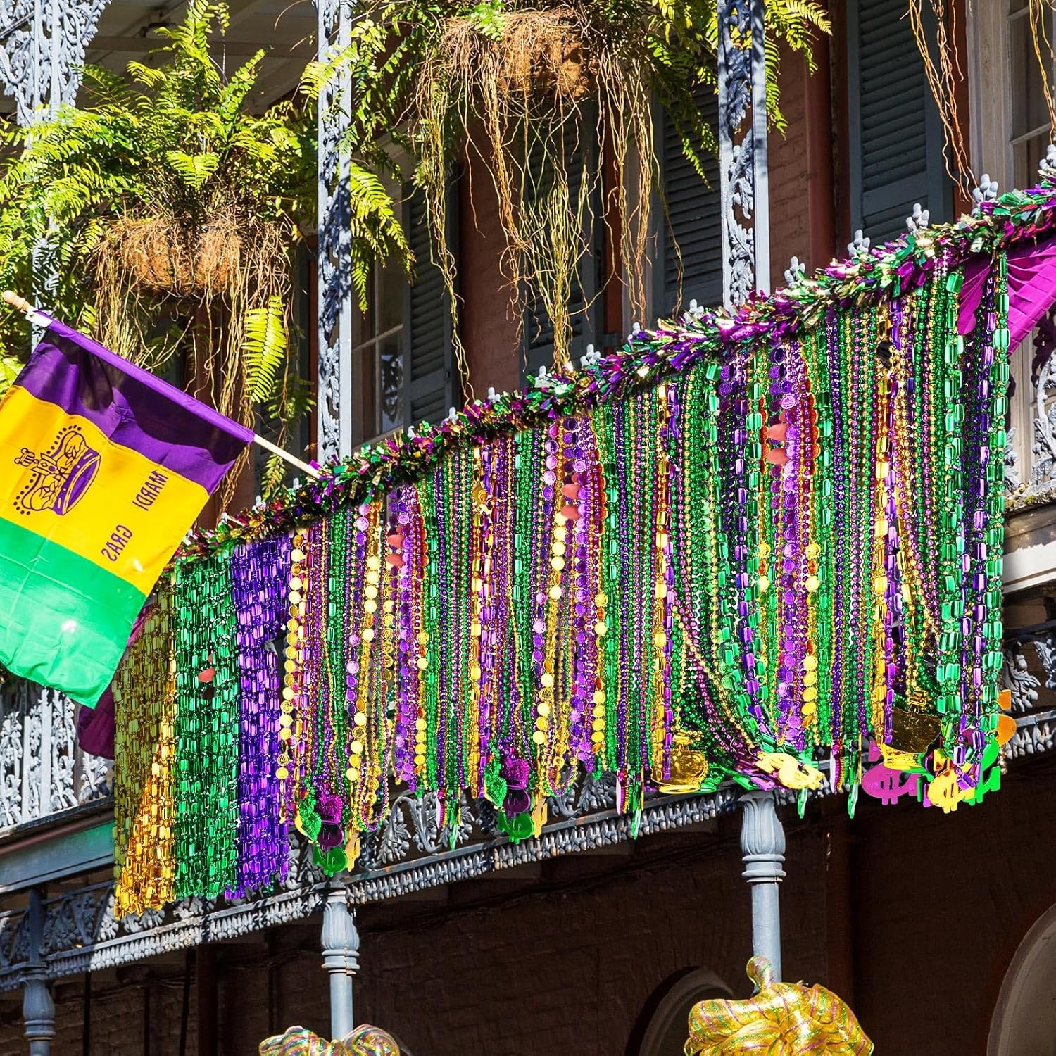 Features: Bulk Mardi Gras bead necklaces featuring ideal purple, green, and gold colors in assorted styles, designed for parade throws, costume accessories, and festive decorations Specifications: Bulk Material: plastic Color: purple, green, and gold Package includes: 1000 Pcs Notes: Manual measurement, please allow slight errors on size. The color may exist a slight difference due to different screen displays.