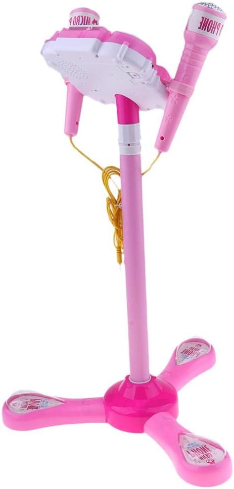 Description: - 2 - 1 Sing Along Microphone with an adjustable Stand and additional handheld microphone for your little stars guest . - Plug in your MP3 Player, Phone, Computer, etc to Play and Sing your own Tunes!Easy to assemble & disassemble for quick setup and storage. - Bright LED light make kids feel like they are on their favorite performance reality show.Easy to use volume and ON/OFF knob.Requried 3xAA Batteries (Not include) - The with stand cultivates your toddler hand-eye coordination, motor skills. - Perfect for ages 3,4,5,6,7,8,10 years old. stand with light as the Chritsmas ,birthday gifts for teen girls.Size Chart:Adjustable Stand: 53-89cm / 20.86-35.03inchSize: 17x14.5cm / 6.69x5.70inchPackage Includes:1 Set Karaoke Machine Toys