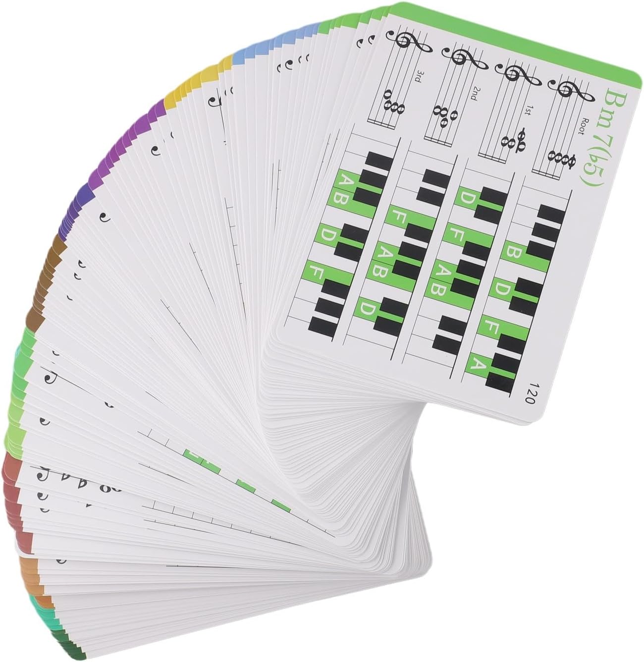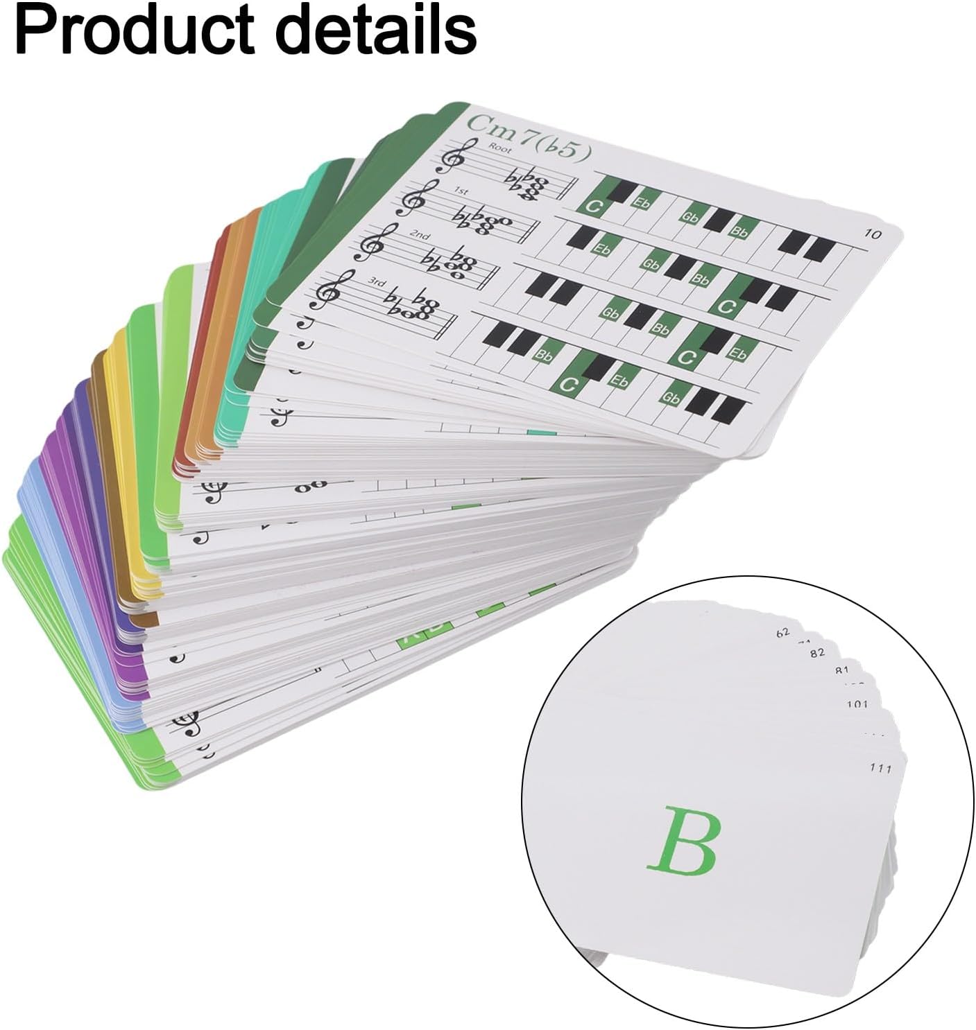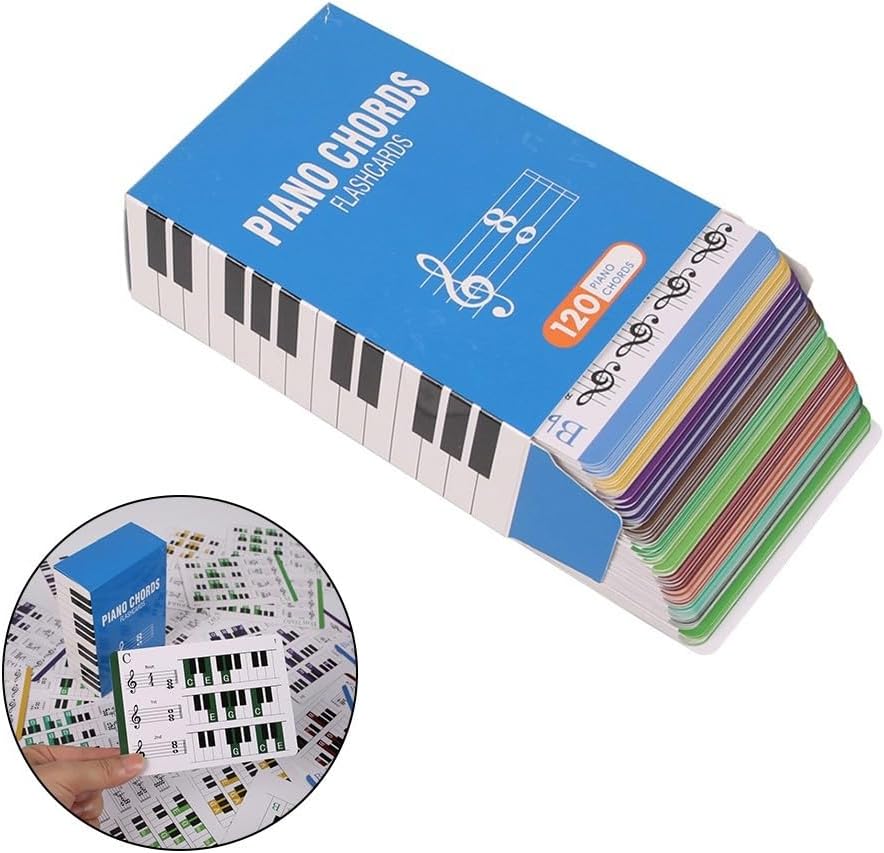 Features:1. Learn The Fun Way: Our music chord flashcard sets include 120 color-coded flashcards and a chart, allowing music learners to practice and quickly identify chords.2. Teach Your for Kid Music Theory: These flashcards are perfect for teaching music theory and supplementing lessons, helpinglearn chord positions and sheet music reading.3. Get All The Practice You Need: Place the flashcards on the chord chart and practice chord progressions at your convenience. for Boost your skills in various genres of playing through repetition.4. Complete Color Coded Flash Cards Set: Our box contains a comprehensive selection of 100 beginner chords, including the 10 most common chords for each key, along with notes and chord inversions, all color-coded for easy identification.5. Surprise A Loved Player: Our flashcards are 3.74 x 5.31 inches, easy to hold for hands, and come in delightful box with a design, making them a thoughtful Select formusic learners, parents, teachers, or homeschoolers.Specifications:*Part Name: Chord Flashcards Set*Material:art paper*Size:3.74 x 5.31 inches*Color:ColorfulPackage Content: Chord Flashcards(120pcs)*1+ Chart*1+Box*1Note:1. The real color of the item may be slightly different from the pictures shown on website caused by many factors such as brightness of yourand light brightness.2. Please allow slight manual measurement deviation for the data.