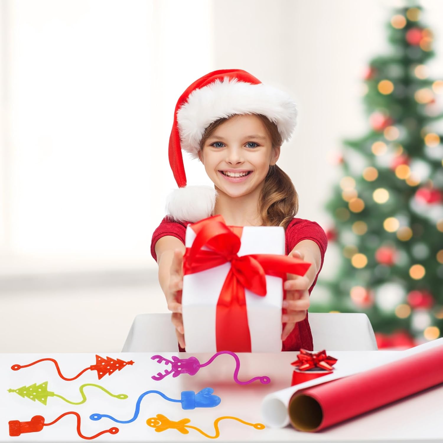 Menzcci 36 Pack Christmas Sticky Hand Toys, 8 Styles Sticky Stretchy ToysProduct Features:1. Christmas Sticky Toys: 36 pack of christmas sticky hands (1.5 - 2.6 inches x 9 inches), 8 styles and 6 colors, Styles and colors are packaged randomly.2. About the Toys: Stress relief for kids boys girls, Practical jokes for christmas, You can stick it anywhere, Great gifts for christmas and birthday.3. Good Material: The toys are made of good quality tpr material, Its safe, Soft, Smooth and good elasticity, Sticking, Throwing and Stretching.4. Merry Christmas: 6 colors sticky hand toys, Sticky stretchy design for stress relief, Very enjoyable to play, You will get more pleasure and sensory experience.