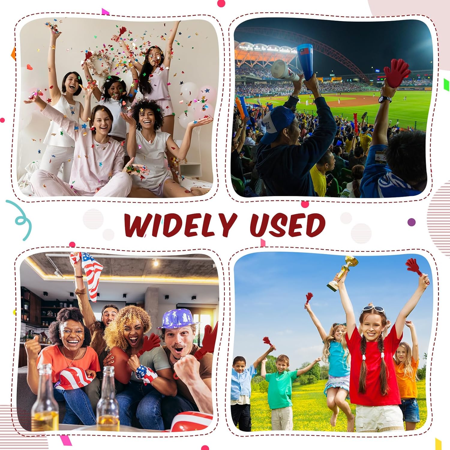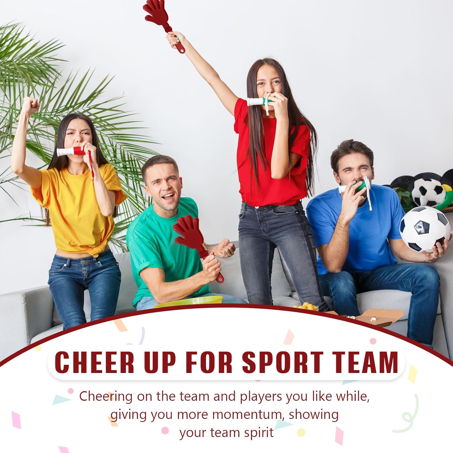 Product Information: Stand out from the crowd of clappers by using our hand clapper to show team spirit; These Maroon clapping hands are perfect for soccer games and soccer night parties, American football and baseball games; Show your favorite team some love. You can give these white hand clappers to your family members, relatives, close friend, classmates and colleagues on various occasions, they will be delighted to receive such interesting gifts. Material: plastic Color: Maroon Size: 19 cm/ 7.5 inches Package includes: 24 x Maroon hand clappers Notes: Manual measurement, please allow slight errors on size. The color may exist a slight difference due to different screen displays. Suitable for people over 12 years old.