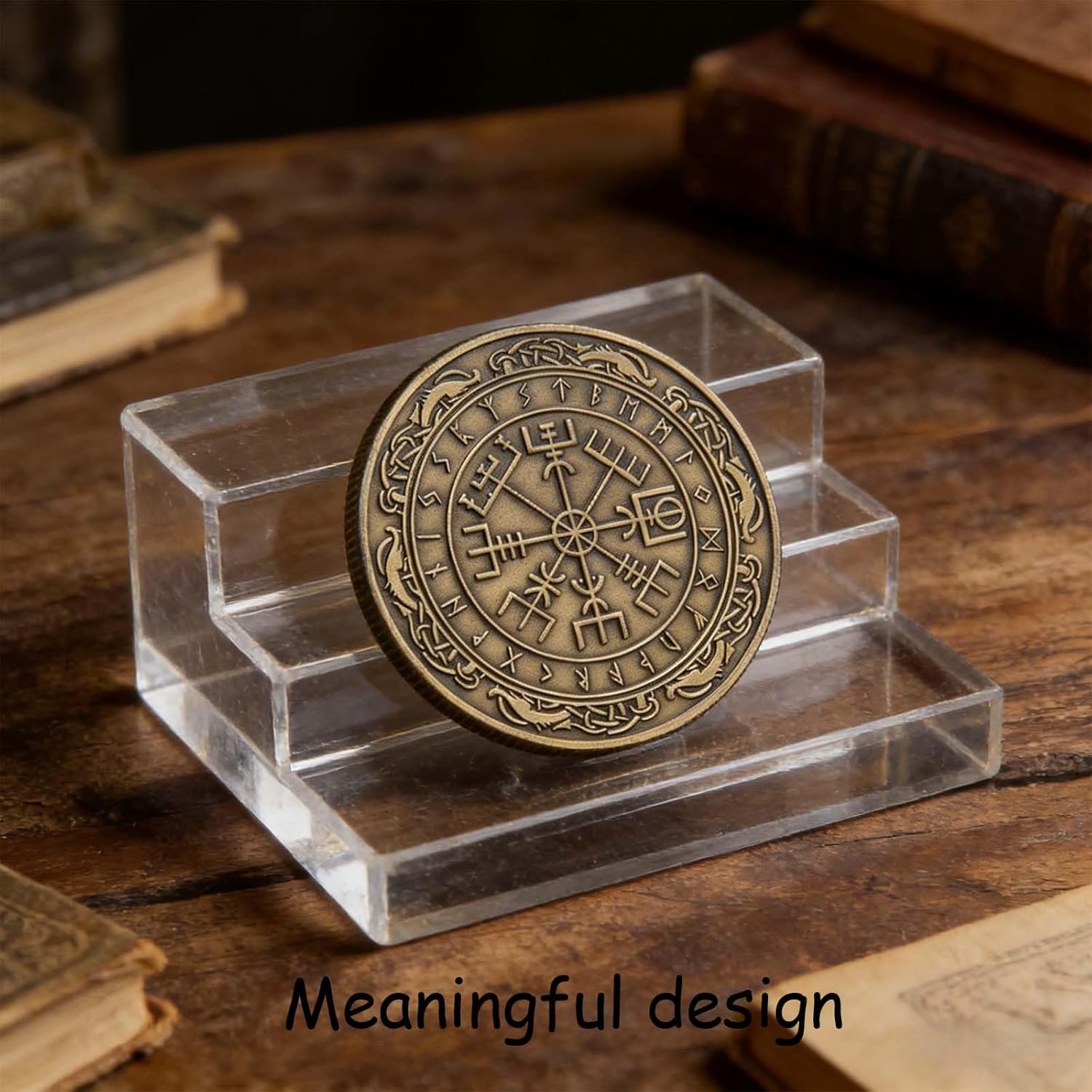 Viking Challenge Coin: Rune Compass Design Centered around the classic Viking compass, surrounded by ancient Nordic runes Durable antique-finished brass with precision engraving ensures timeless imagery. The ideal gifts for Viking enthusiasts, mythology fans, or history buffs.