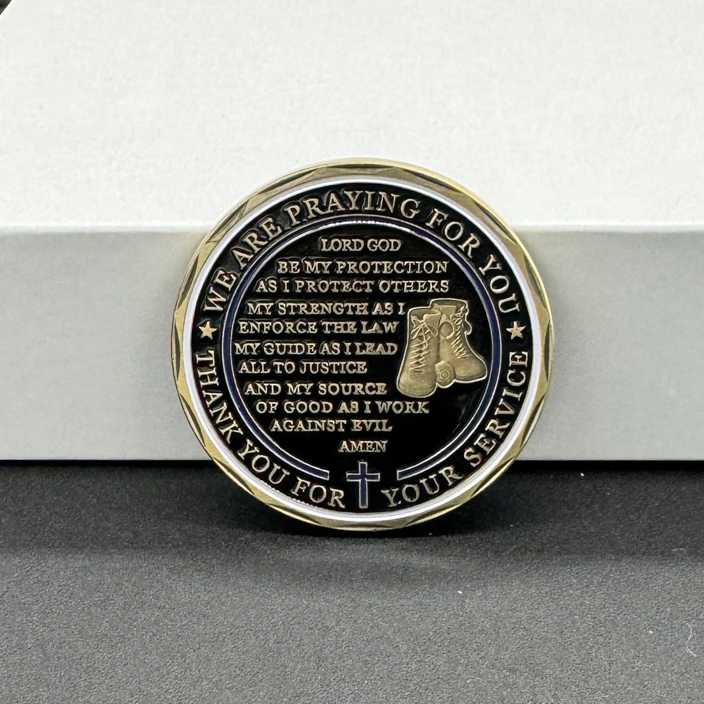 Thank You Saint Michael law enforcement coin with policeman officer prayer, This challenge coin makes a thoughtful gift to give to a friend or family member who protect us. Front side of the coin is St. Michael, the patron saint of law enforcement officers, to serve, to protect; Back side with policeman prayer, thank you for your service, we are praying for you. A nice commemorative collection for Police Officers, Veterans, Patriot, Soldier, Coin Collectibles Collector or a Great Gift for anyone currently serving or planning to serve in law enforcement.