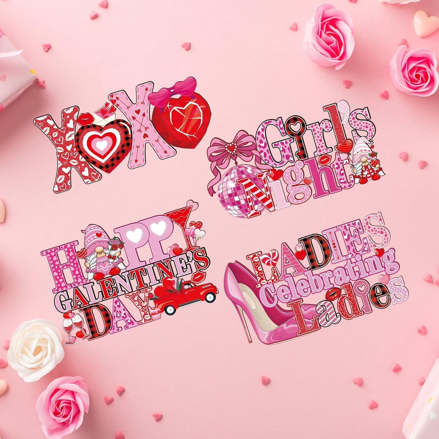 Package contents: You will receive 4pcs Valentines Day Table Decorations wooden centerpieces. Product features: 1. Use rich and classical Valentines day element. 2.Bright color design. 2. Adopt single side printing. 3. Selection of high-quality fiber wood material to ensure product quality and durability. 4. The pattern design is unique and vivid, suitable for long-term use. Size specification: It measure about 4.3x8.7inch,5.1x8.6inch,5.9x8.7inch,4.5x8.7inch