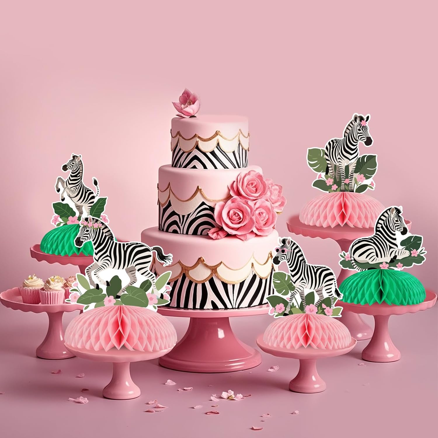 Package Includes: 8 × zebra themed honeycomb centerpieces 16 × metal clipsMaterial: paperColor: black, whiteOccasion: birthday, baby shower, bridal shower, engagement, weddingTarget Audience: women, girls