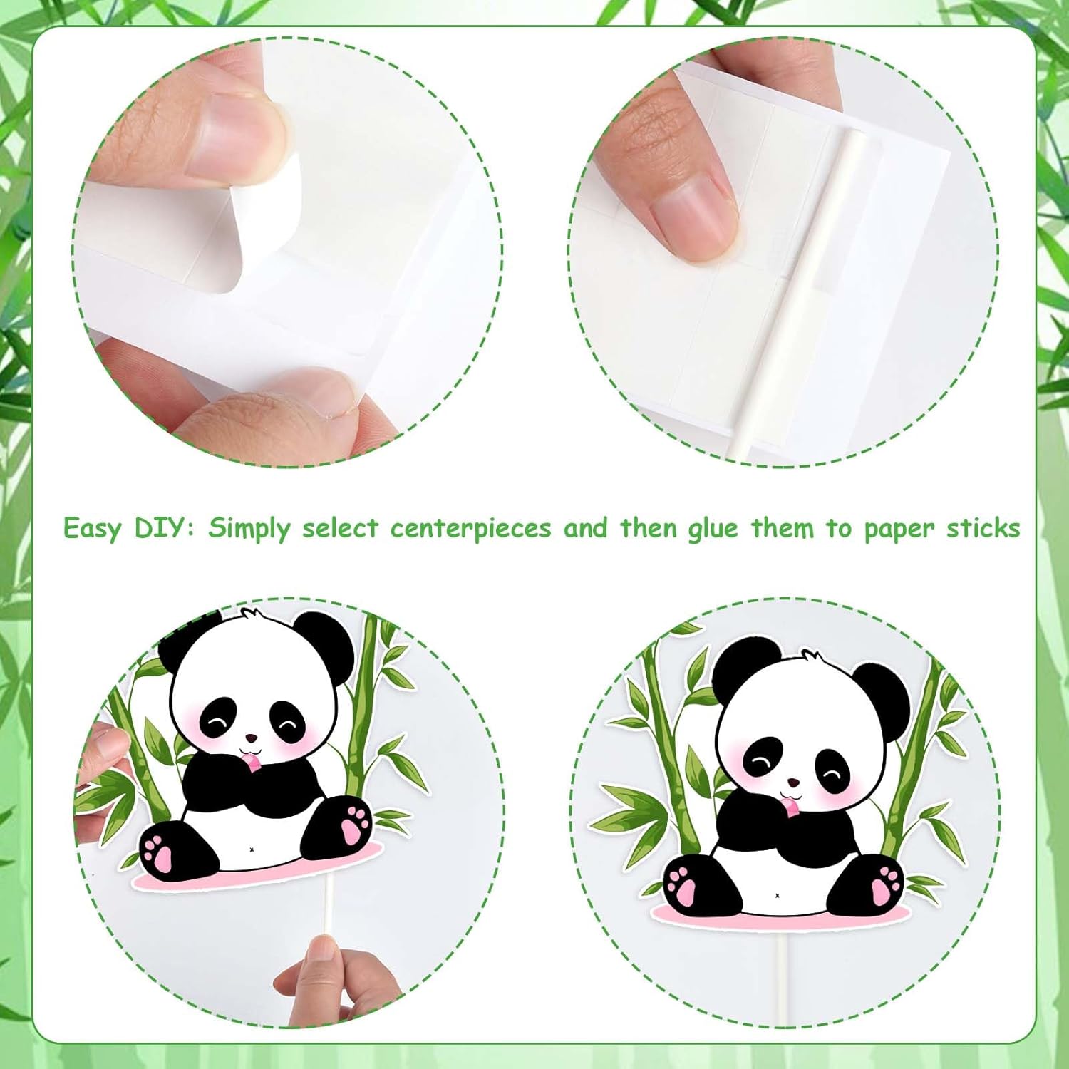 Panda Party Decorations Component: 24pcs table centerpieces, 4pcs of each type, approx 7.5×6.3 inches. Made of card stock, double-sided printing, you can use these panda table centerpieces as your panda themed party table decoration. You just need to simply select centerpieces and then glue them to paper sticks then you will get unique panda theme party supplies.