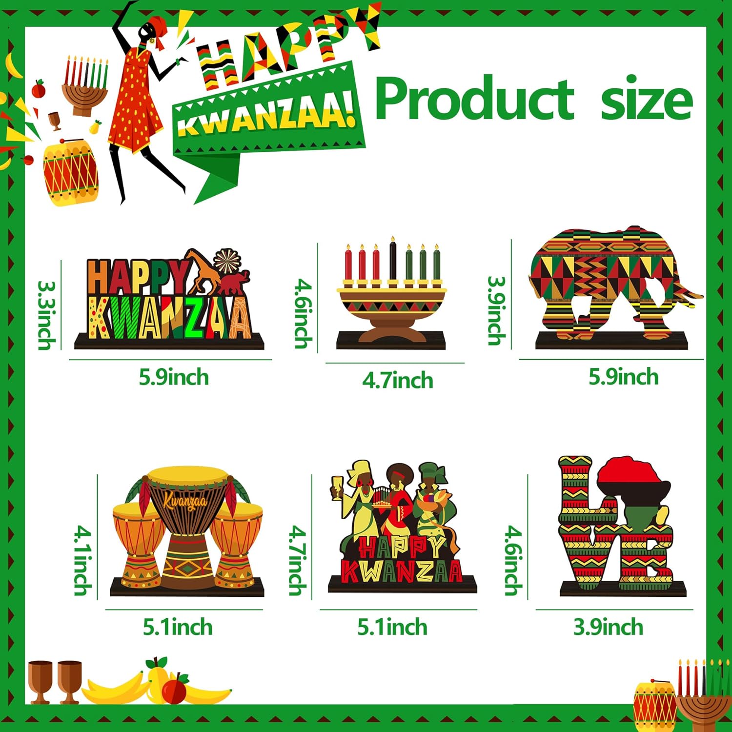 Package Includes:You will receive 6 pieces different styles of wooden Kwanzaa table centerpieces decorations,including 2 pcs 10-inch and 4 pcs 7-inch wooden Kwanzaa table decorations,enough quantity can meet your holiday decorations needs,will make your Kwanzaa party more attractive and memorable. Traditional Style: The Kwanzaa table centerpieces feature traditional African elements, including Kinara, African drums, fruits, African masks and African maps, and also with the letter “Happy Kwanzaa”, blending traditional elements and rendering a festive atmosphere. Easy Installation Procedure: the wooden table decor comes with separate stable bases for effortless assembly; After inserting the wooden sign into the base, the structure remains firm and safe from the usual wear and tear; The ease of assembly and disassembly also makes storage a breeze, allowing you to keep them safe until the next holiday season Quality Material: Our table signs are made of quality density wood board, sturdy and reliable, and won't easily break or deform. The exquisite craftsmanship ensures that they won't scratch your skin, giving you peace of mind when using them. Festive Atmosphere Creator: these wooden centerpieces add a festive atmosphere to any setting; They transform your table into a holiday wonderland, lifting everyone's holiday spirit