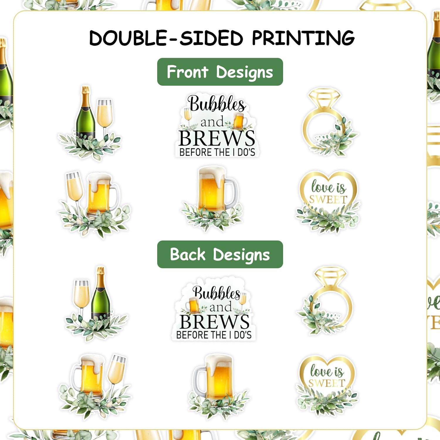 A great choice for bubbles and brews bridal shower party, and create an unforgettable bridal shower, and bachelorette party for you.Bubbles and Brews Before The I Dos Centerpiece Sticks: 24 bubbles and brews bridal shower printed cards 24 paper sticks 50 bonding points Material: paper Color: sage green and gold