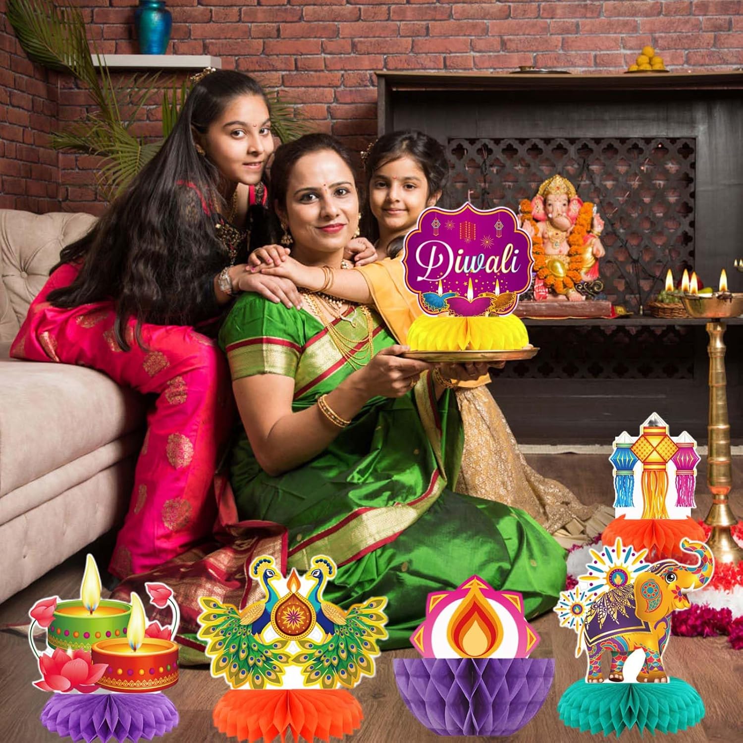 Enhance your Diwali celebrations with these festive honeycomb decorations! Perfect for Diwali parties, family gatherings, and home decor, these decorations bring joy and a vibrant atmosphere. Elevate your party by placing these Diwali paper honeycomb decorations in key display areas, making your table visually striking and full of festive charm.Specifications:Material: paperboardMain colors: yellow, redSize: as shown in picturesPackage includes:9 x Diwali honeycomb centerpieces decorationsNotes:Manual measurement, please allow slight errors on size.The color may exist a slight difference due to different screen displays.