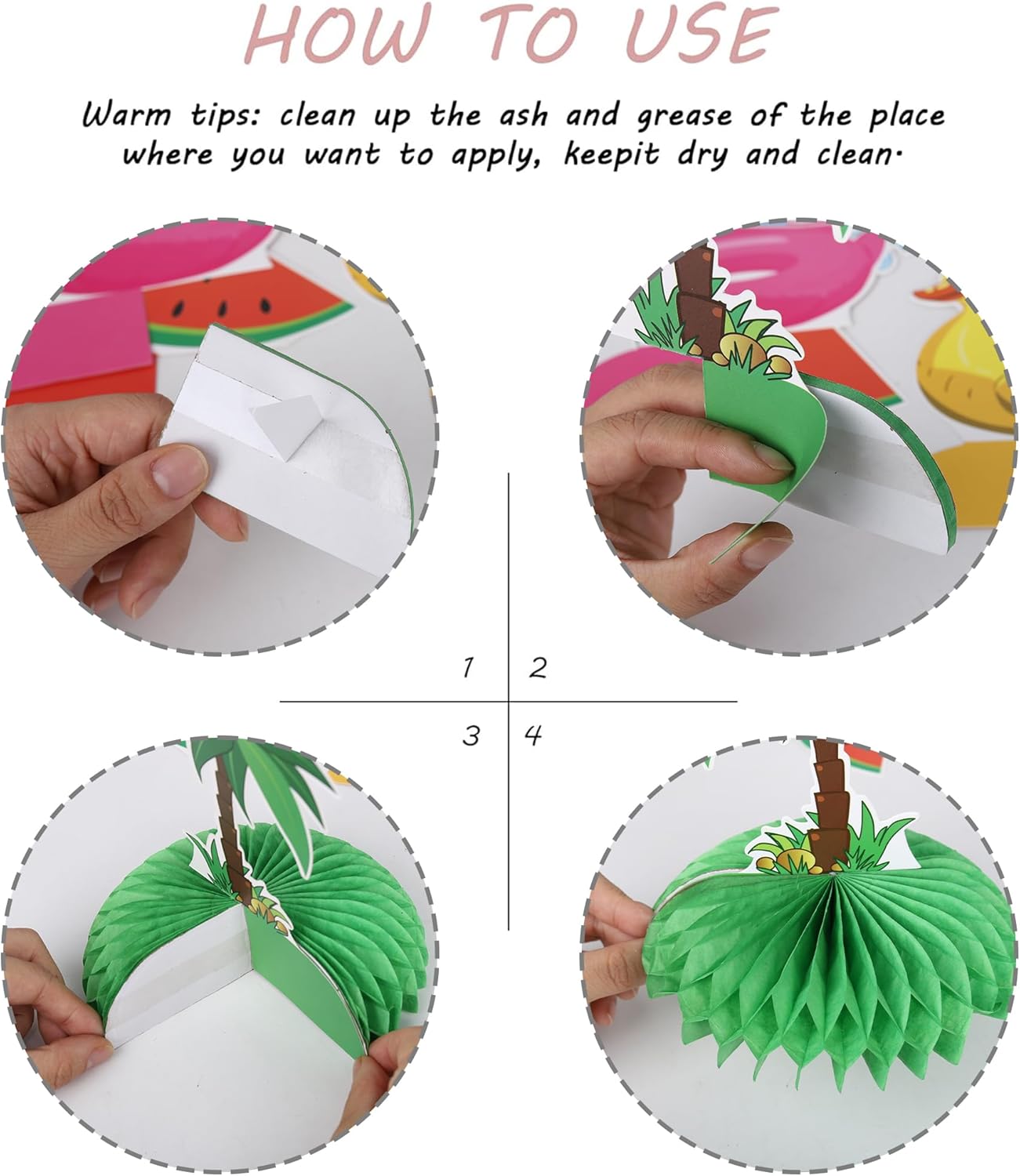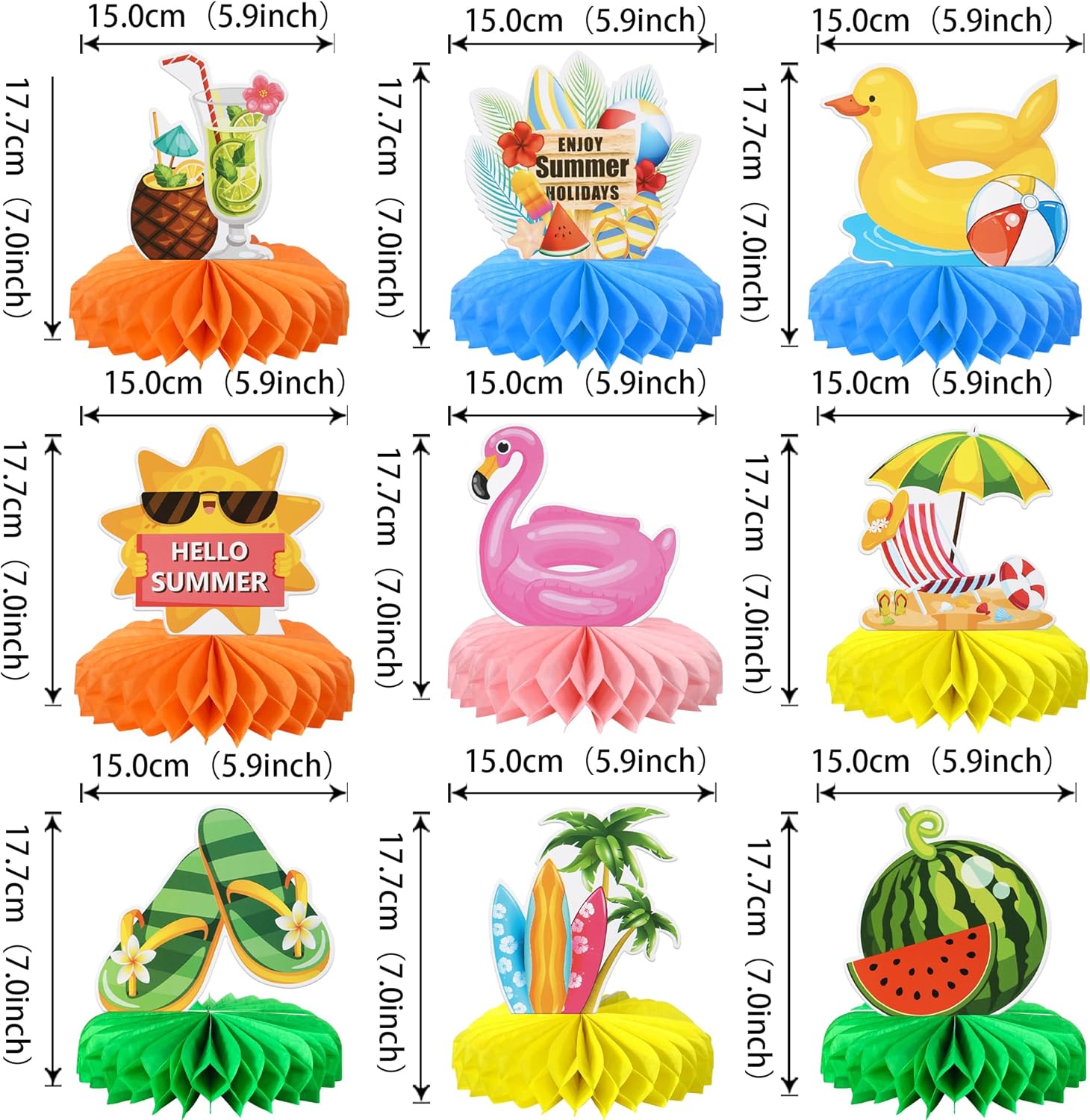 Package and Size Package includes 9 pack summer honeycomb centerpieces. ample quantity can meet your needs. All honeycomb centerpieces, are assembled well,the size is 5.9*7.0 inch ( with stick ) Material and Application These summer honeycomb centerpieces, are made of are made of sturdy card stock and vivid printing technology, These honeycomb centerpieces are perfect for summer party, beach party, hello summer party decorations, summer-themed baby shower party decorations, beach theme birthday party decorations for party. Important Note Due to the light and screen difference, the item's color may be slightly different from the pictures. These honeycomb centerpieces are for decoration purposes only, not edible and do not place in oven or use for baking. These honeycomb centerpieces are made of tissue paper and the top is made of quality cardstock with adorable and vibrant pattern and bright color on it, durable and sturdy. Buy with Confidence We offer 100% refund if you are not satisfied with the products. If you have any question, please feel free to contact us, we will do our best to solve the problem within 24 hours. Rsstarxi is our own brand, which is registered on amazon. The purpose of our brand is make your party attractive and interesting, Our highest priority is your satisfaction!