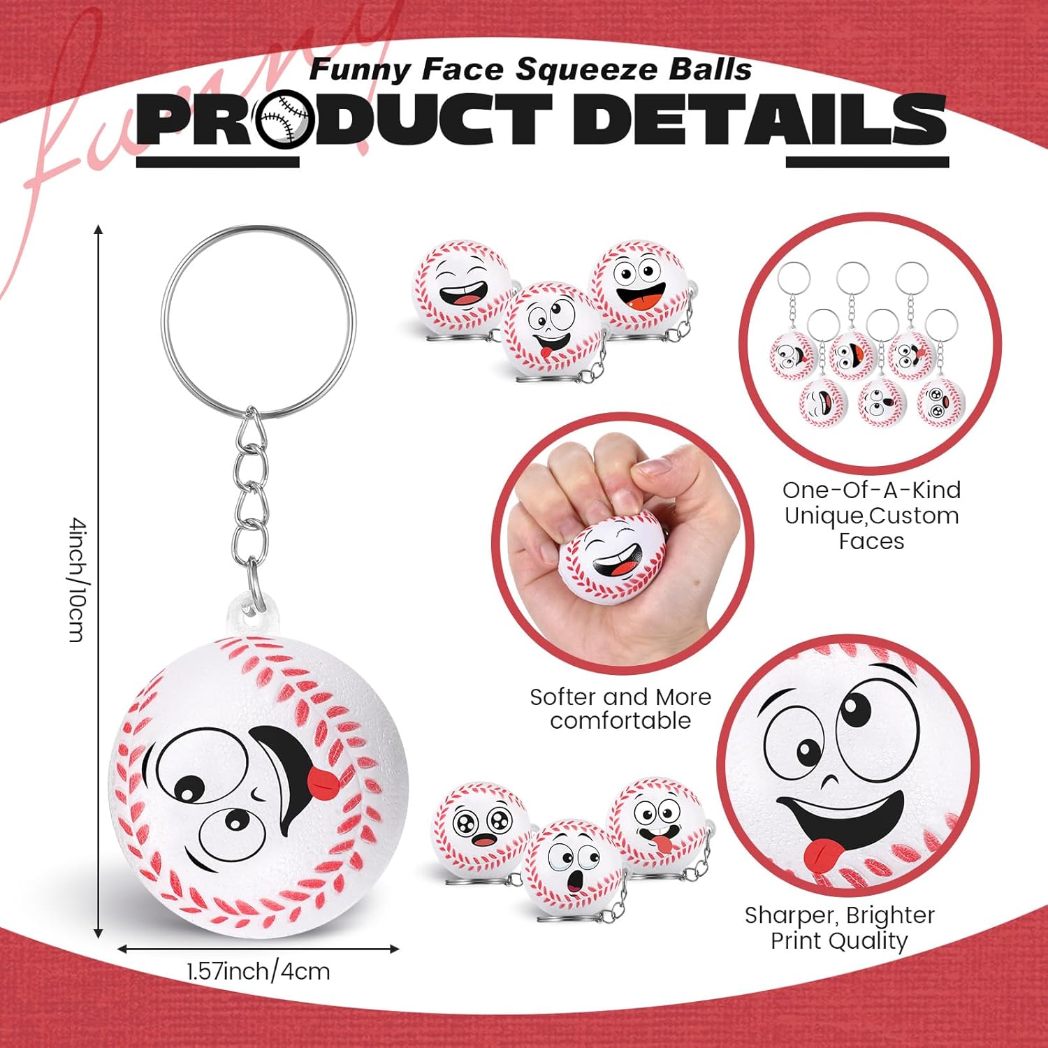Features: Made of quality pu foam materials, these baseball foam ball keychains are durable and soft. The baseball squeeze ball design adds an extra design of fun and stress relief, making them a ideal accessory to have on hand during busy or tense moments. Plus, the compact size of these sports baseball charm keychains makes them easy to carry with you wherever you go, ensuring that you always have a little piece of your favorite sport close at hand. These novelty sports squeeze balls are suitable for team souvenirs, rewards, party favors, or gifts for sports fans of all ages. Whether you're hosting a sports-themed birthday party, team banquet, or other special event, these sports ball keyrings are sure to be a hit with your guests. Specifications: Material: pu foam Color: white Size: 1.57 inches/4 cm in diameter Package includes: 30x Baseball stress ball keychains bulk Notes: Manual measurement, please allow slight errors on size. The color may exist a slight difference due to different screen displays.