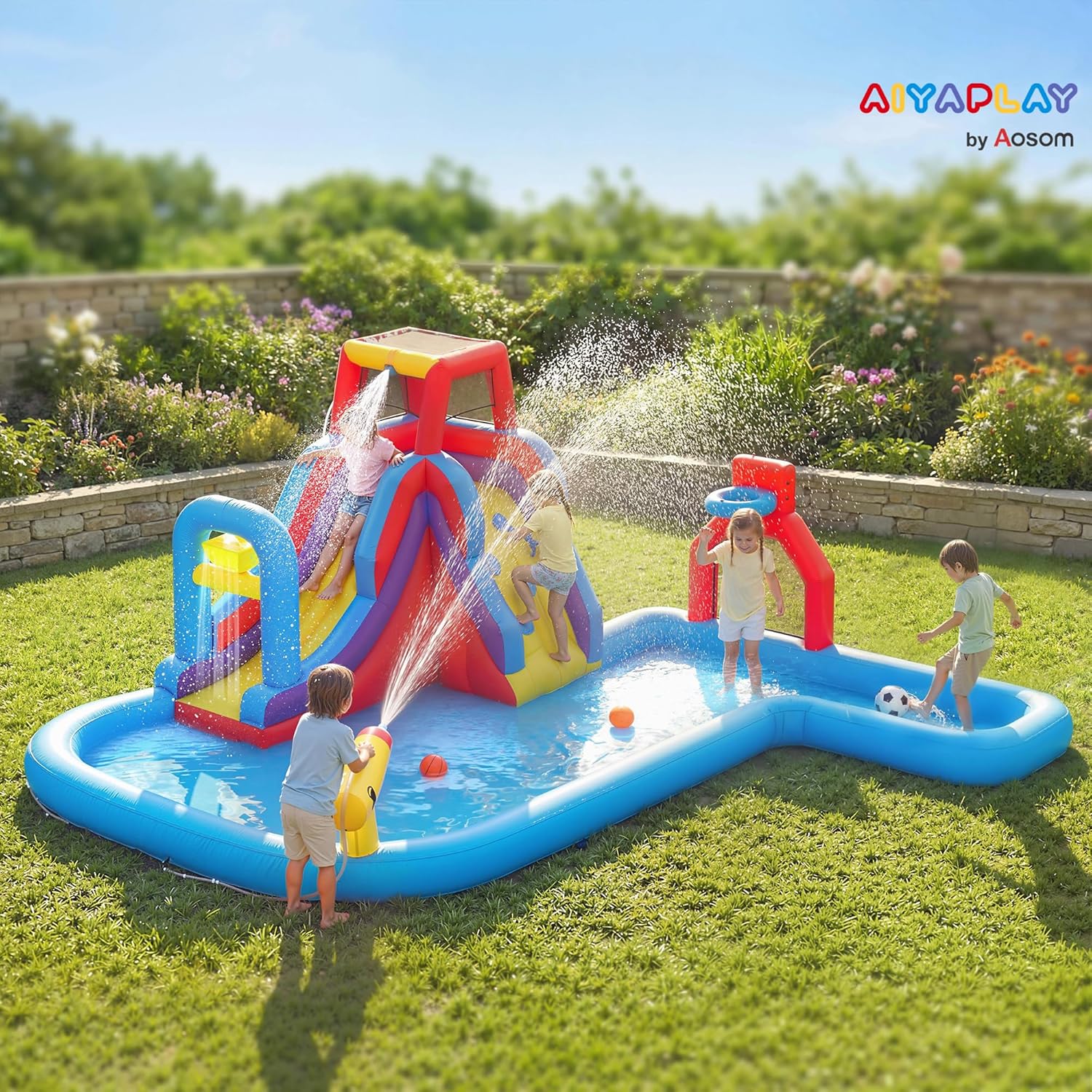 | Included Components | Basketball Hoop, Climbing wall, Soccer Goal, Swimming Pool, blower, slide |
