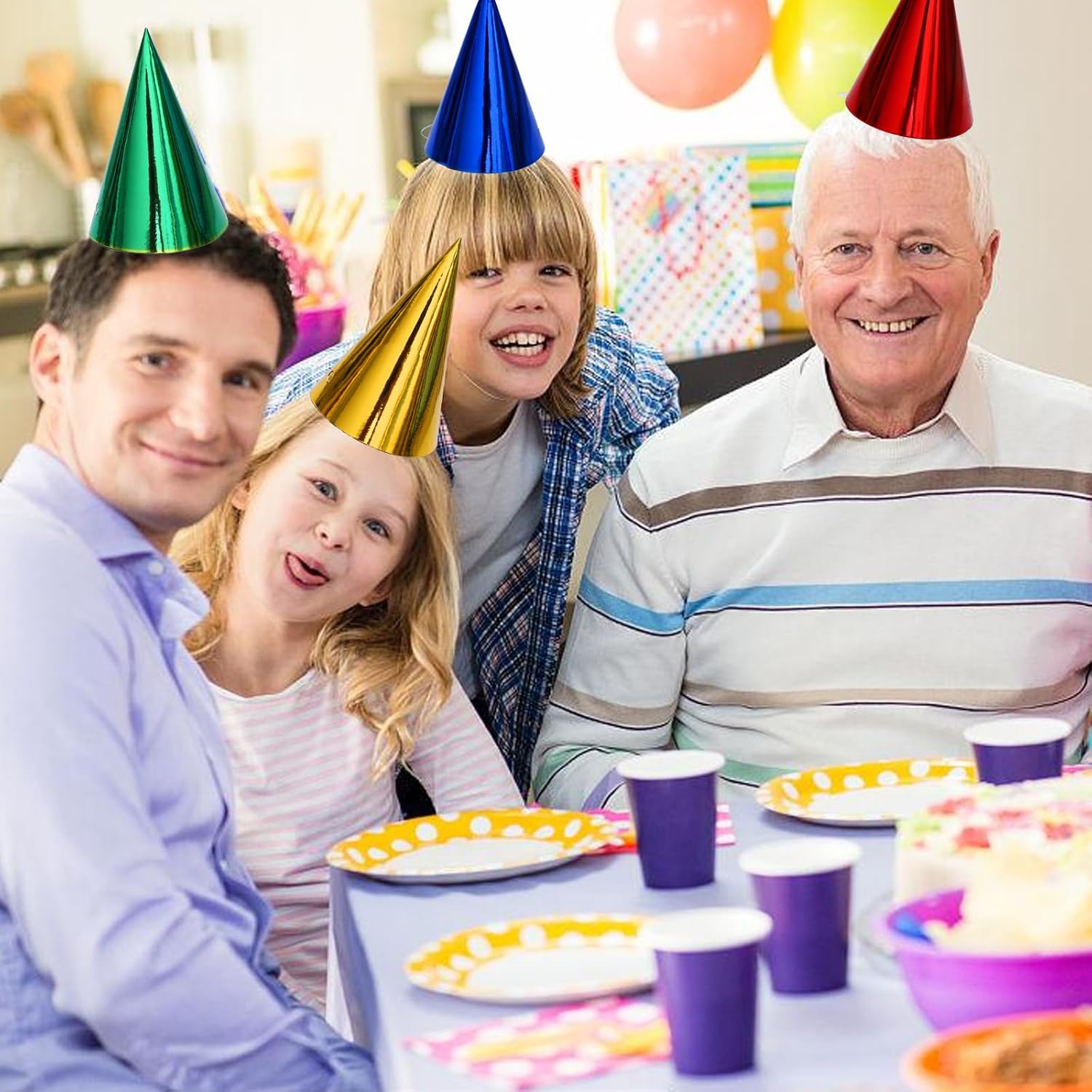 Feature: vivid color and convenient for take useful party tools Specification: Material: paper Color: silver blue green gold red purple Product size:6.5 x 4.1 inch Product weight: 5 ounces Package include: 24*party hats