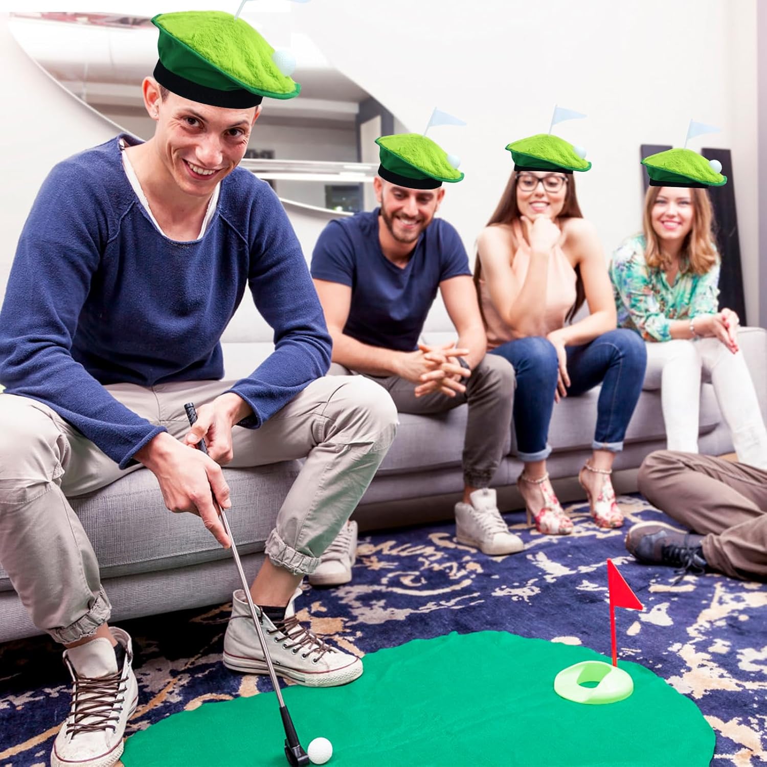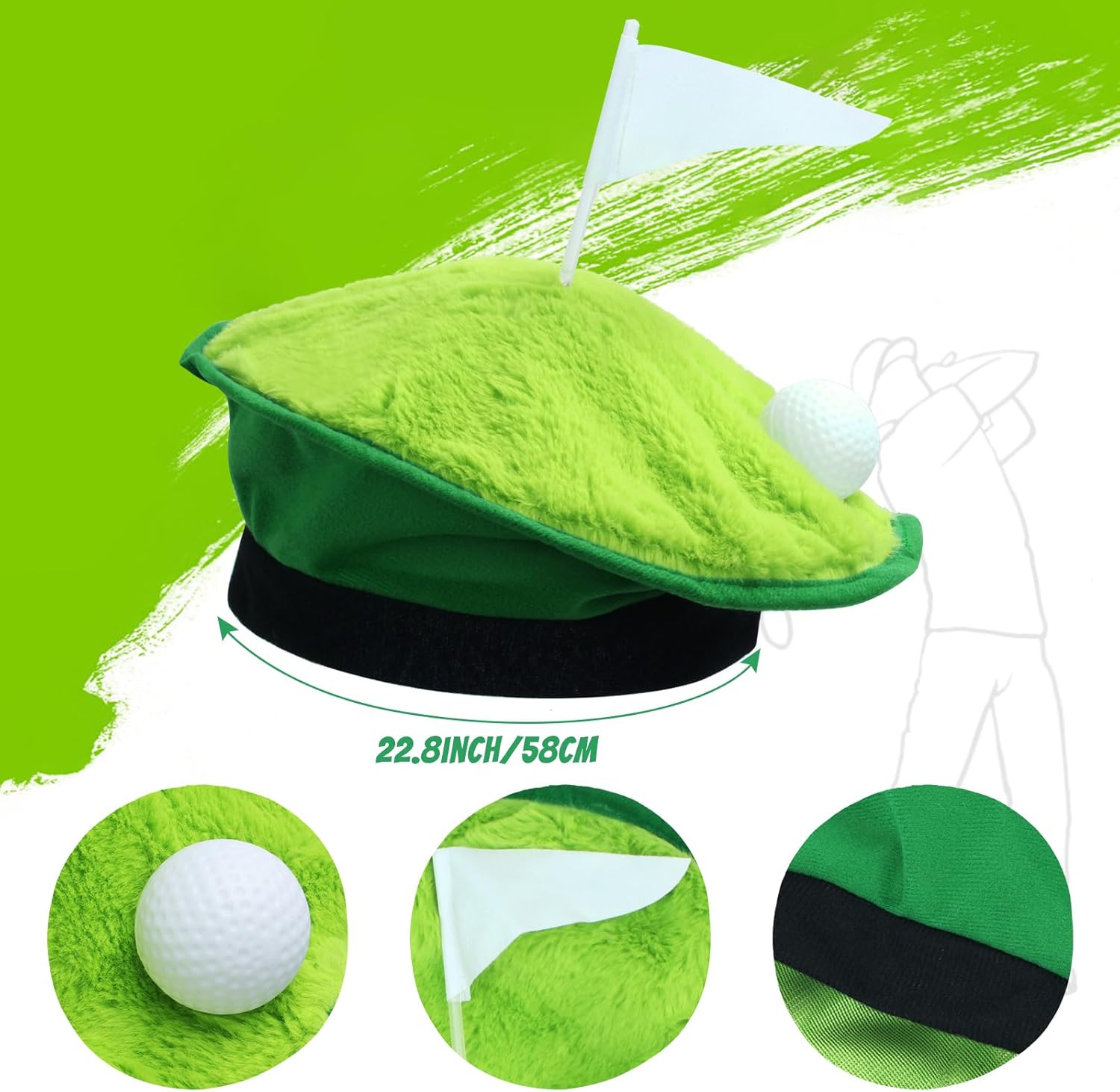 The golf enthusiasts will love to wear this golf beret.Made of polyester and felt,this green cap puts everyone on the green and makes a perfect tee prize,golf present, father's day present,or gag present.Many use this Hole in One beret with a pin in the middle of his head as a tribute to the golfer who has made a hole in one. Specification: Material:plush,felt Size:22.8 inches/58cm in head circumference Color:Green Features Foldability:Foldable and can be easily tucked into a pocket or bag when not in use. Stability:The inner headband of the beret that rests against the wearer's forehead,which helps the hat stay in place and provides a comfortable fit. Slouchy:Their slouchy appearance give a good look,with the crown slumping or draping slightly to one side or to the back of the head. Package includes: 4 Golfer Berets Note: 1.Manual measurement,please allow slight errors on size. 2.The colors may exist slight difference due to different screens.