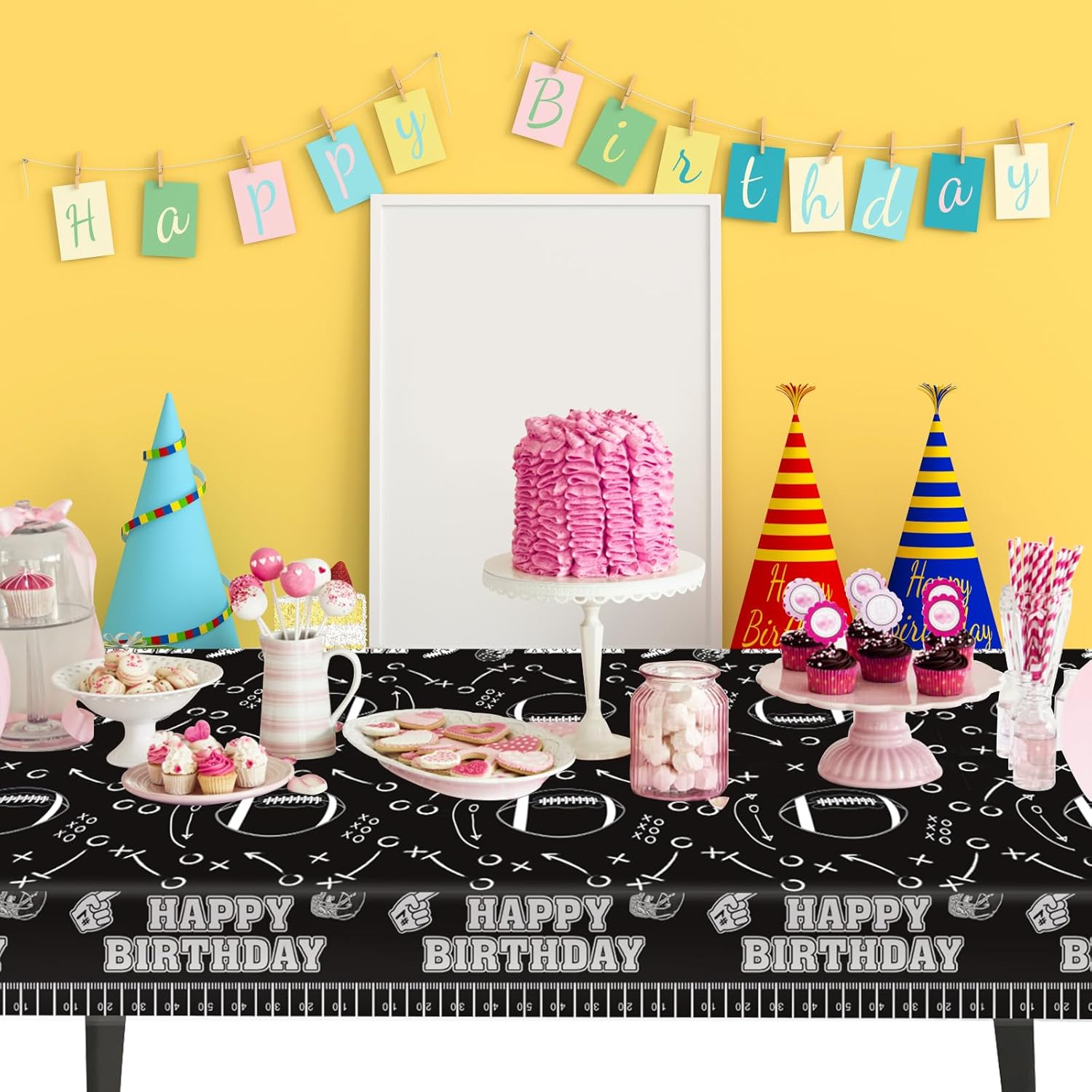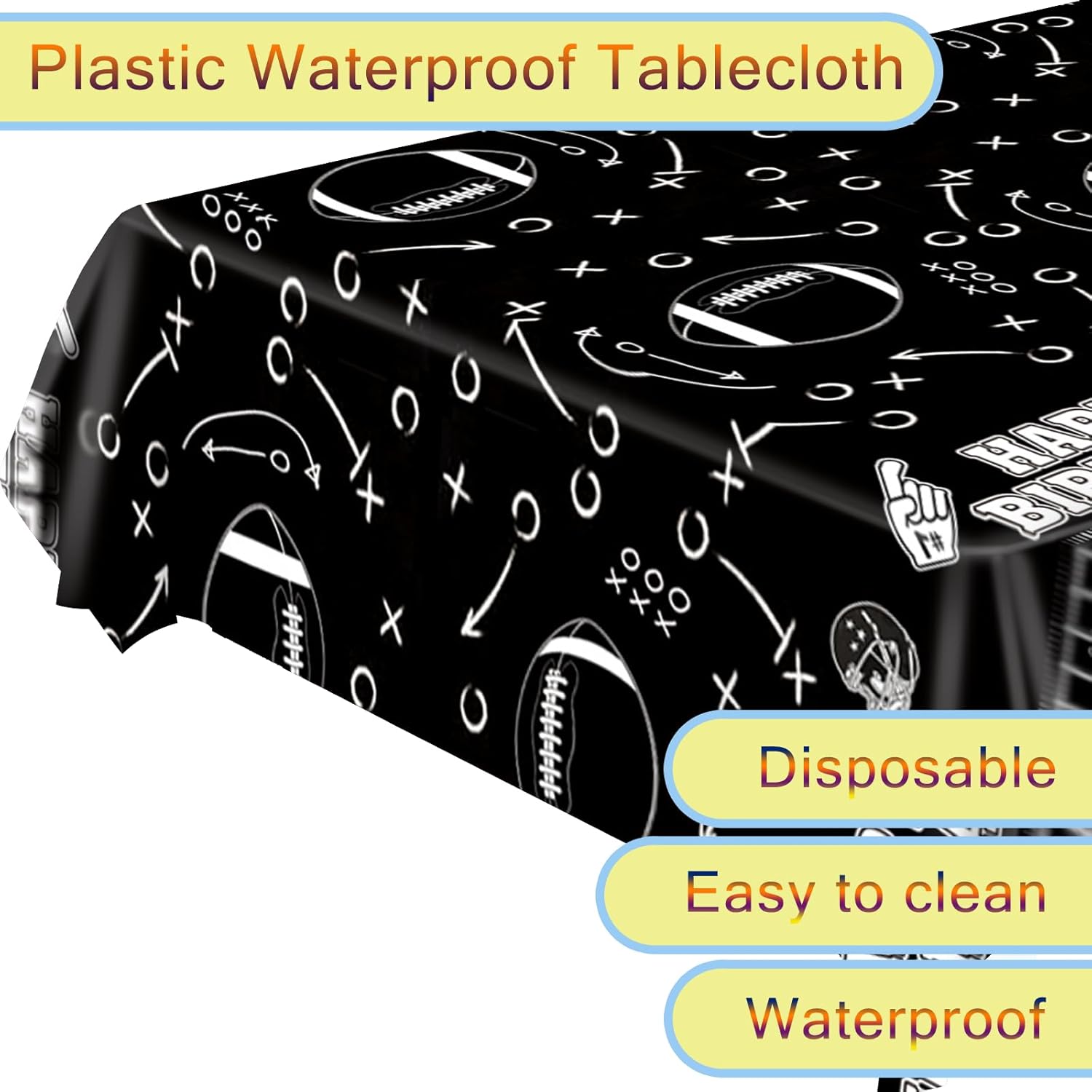 3pcs Football Tablecloth, Football Theme Birthday Decorations Supplies, Plastic Football Field Tablecloth, Rectangular Racetrack Tablecloth, Black Football Table Cloth TableCovers for Kids Adults, 54 x 108 Inch